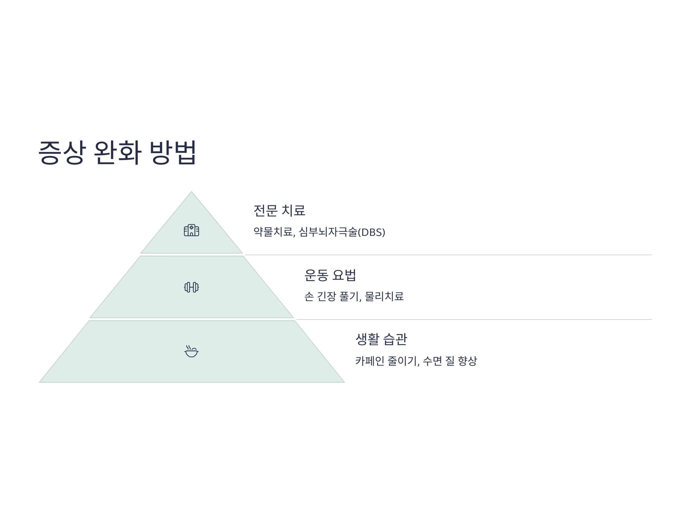본태성 떨림의 경우 일상 속 작은 습관 변화만으로도 증상을 완화시킬 수 있습니다. 카페인 섭취를 줄이고, 수면의 질을 높이며, 손의 긴장을 풀어주는 운동을 꾸준히 하는 것이 도움이 됩니다. 일부 경우에는 베타 차단제나 항경련제가 처방되기도 하며, 약물 반응이 없는 경우에는 심부 뇌자극술(DBS) 같은 수술도 고려됩니다.