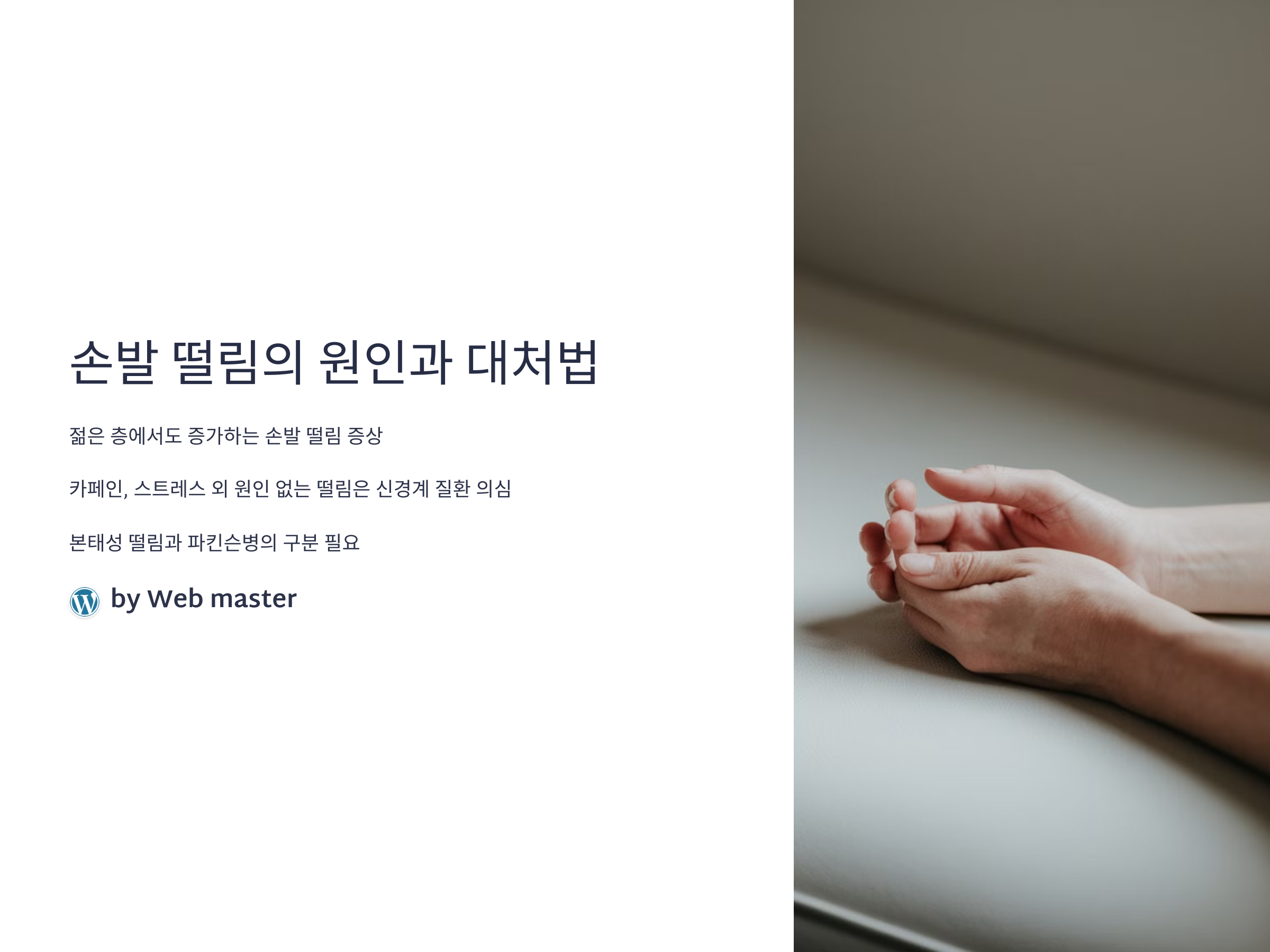 최근 들어 젊은 층에서도 이유 없이 손발이 떨리는 증상을 호소하는 사례가 급증하고 있습니다. 특히 카페인 섭취나 스트레스 외에 명확한 원인이 없는데도 떨림이 지속된다면, 단순한 피로나 긴장이 아닌 신경계 질환일 수 있어 각별한 주의가 필요합니다. 대표적인 원인으로는 '본태성 떨림'과 '파킨슨병'이 있으며, 이 두 질환은 증상은 유사하나 치료 방식과 예후가 매우 다릅니다. 특히 최근 의료계에서는 본태성 떨림을 단순한 노화 현상이 아닌 '질병'으로 적극적으로 관리해야 한다는 인식이 확산되고 있습니다. 또한 파킨슨병의 조기진단 기술이 발전하면서 떨림 증상이 질환의 초기 신호로 주목받고 있어 더욱 세밀한 구분이 필요해졌습니다. 이 글에서는 가만히 있어도 손발이 떨리는 이유와 그에 따른 대처법, 그리고 본태성 떨림과 파킨슨병의 차이점에 대해 전문적으로 설명해 드리겠습니다. 조기 인지를 통해 삶의 질을 더 좋게 바꾸는 방법까지 함께 알아보세요.