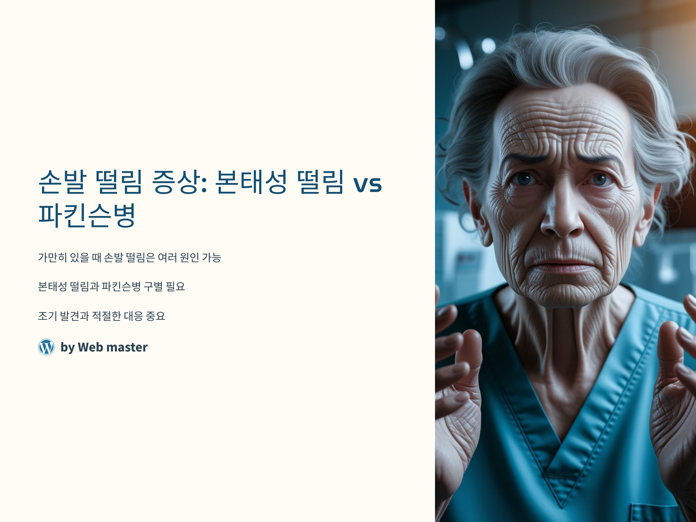 가만히 있을 때 손이나 발이 떨리는 증상은 많은 사람들이 겪을 수 있는 문제입니다. 그러나 떨림이 나타나는 이유는 다양할 수 있으며, 가장 흔한 원인 중 하나는 본태성 떨림과 파킨슨병입니다. 이 두 질환은 떨림을 유발할 수 있지만, 그 원인과 증상은 다릅니다. 본 포스팅에서는 본태성 떨림과 파킨슨병을 구별할 수 있는 주요 특징과 조기 발견법에 대해 설명합니다. 또한, 떨림 증상에 대한 초기 대응 방법과 예방에 대한 조언도 함께 다룰 것입니다.