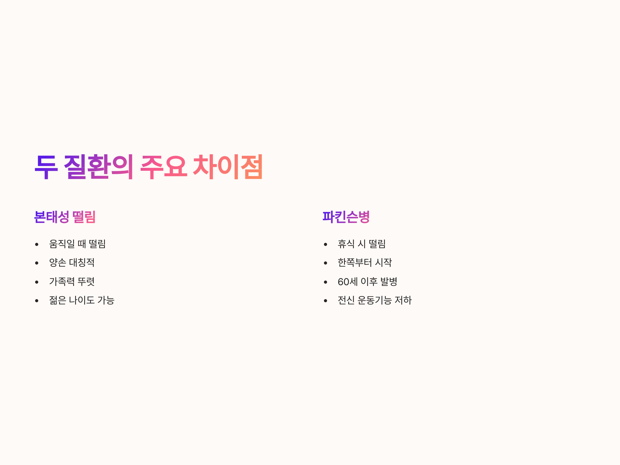 본태성 떨림과 파킨슨병의 주요 차이점 비교