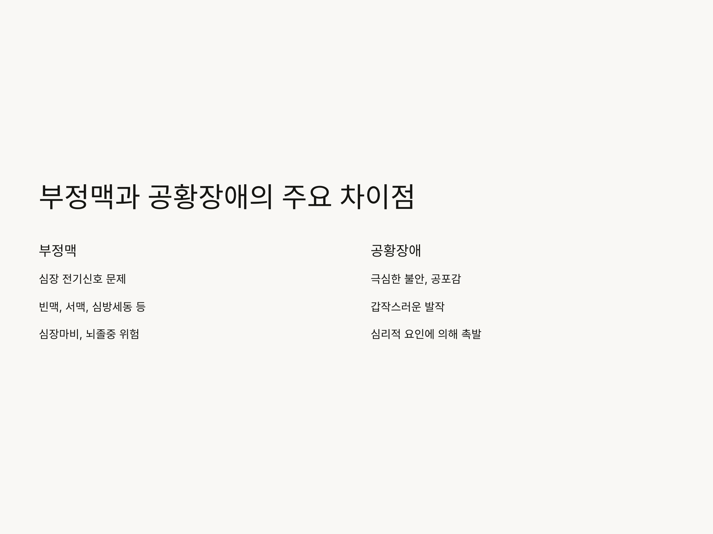 부정맥과 공황장애, 주요 차이점