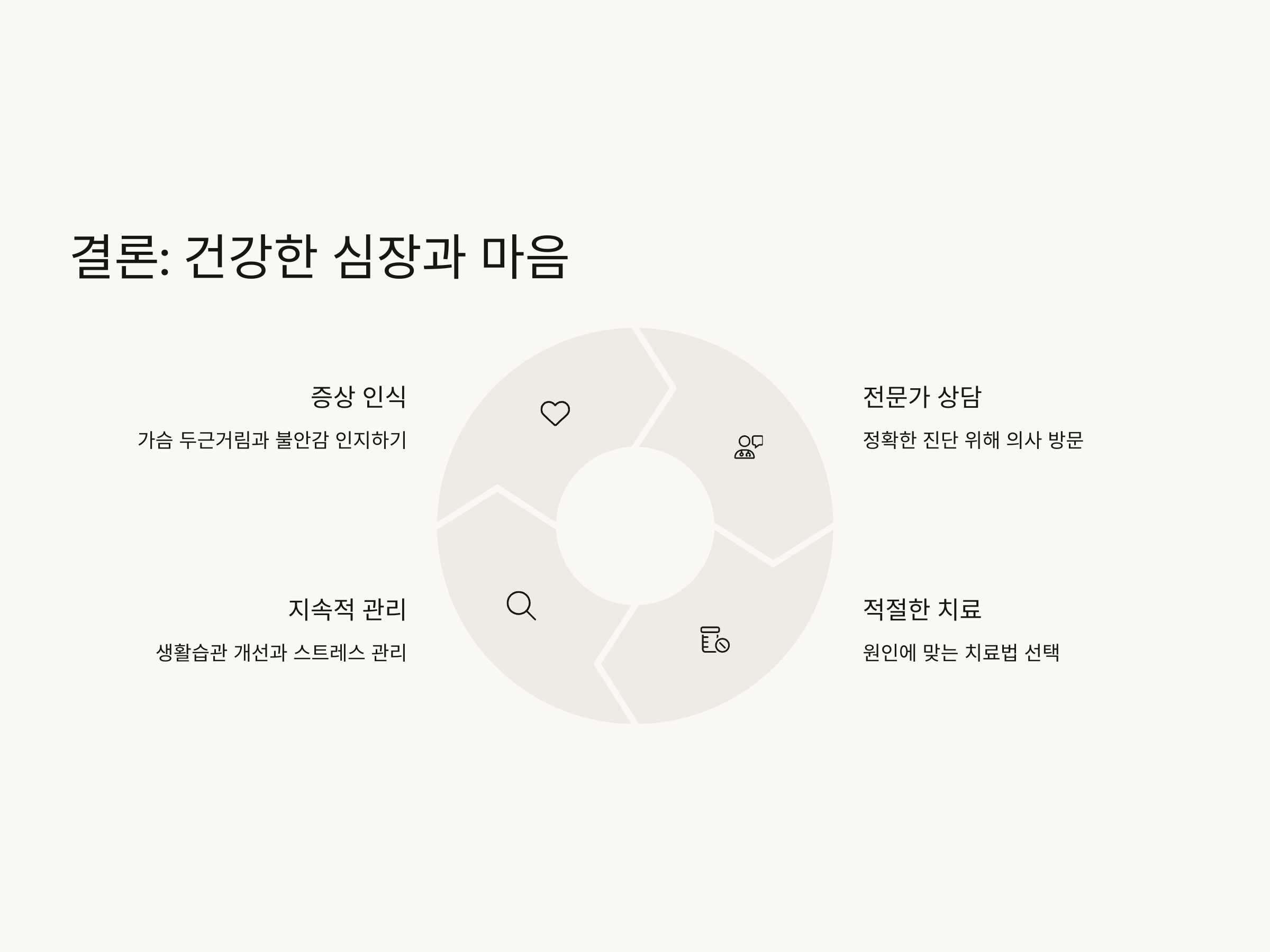- 규칙적인 운동: 적당한 운동은 심장 건강을 돕고, 불안을 줄여줄 수 있습니다.