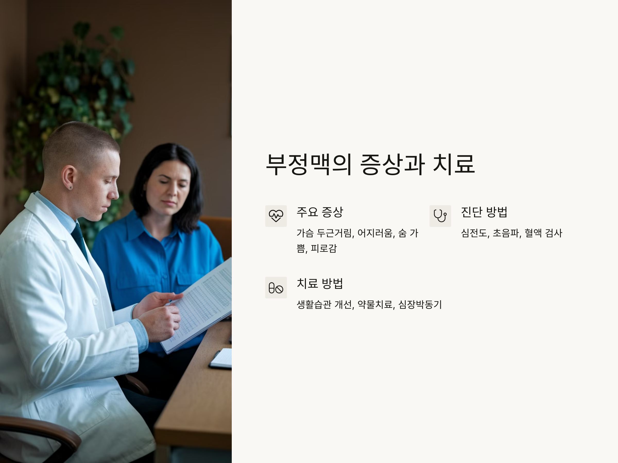 부정맥이 지속적으로 발생하거나 증상이 심한 경우, 전문가와의 상담을 통해 정확한 진단과 치료가 필요합니다.
