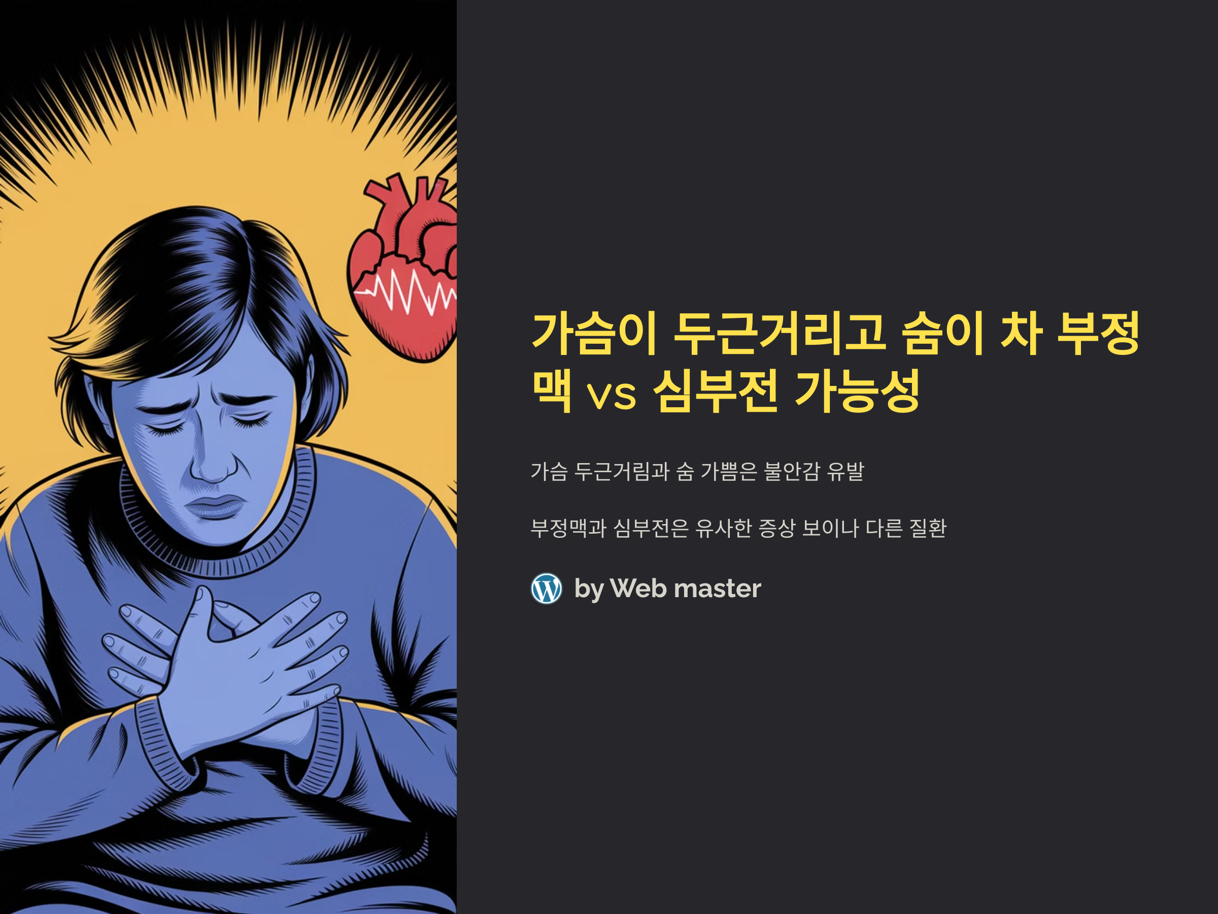 가슴이 두근거리고 숨이 차는 증상은 누구에게나 큰 불안감을 주는 신호일 수 있습니다. 이러한 증상들이 나타나면 많은 사람들이 '부정맥'이나 '심부전'을 걱정하게 됩니다. 부정맥과 심부전은 서로 다른 질환이지만, 그 증상이 매우 유사하여 혼동될 수 있습니다. 이 글에서는 부정맥과 심부전의 주요 증상과 차이점, 그리고 이를 어떻게 구별할 수 있는지에 대해 알아보겠습니다.