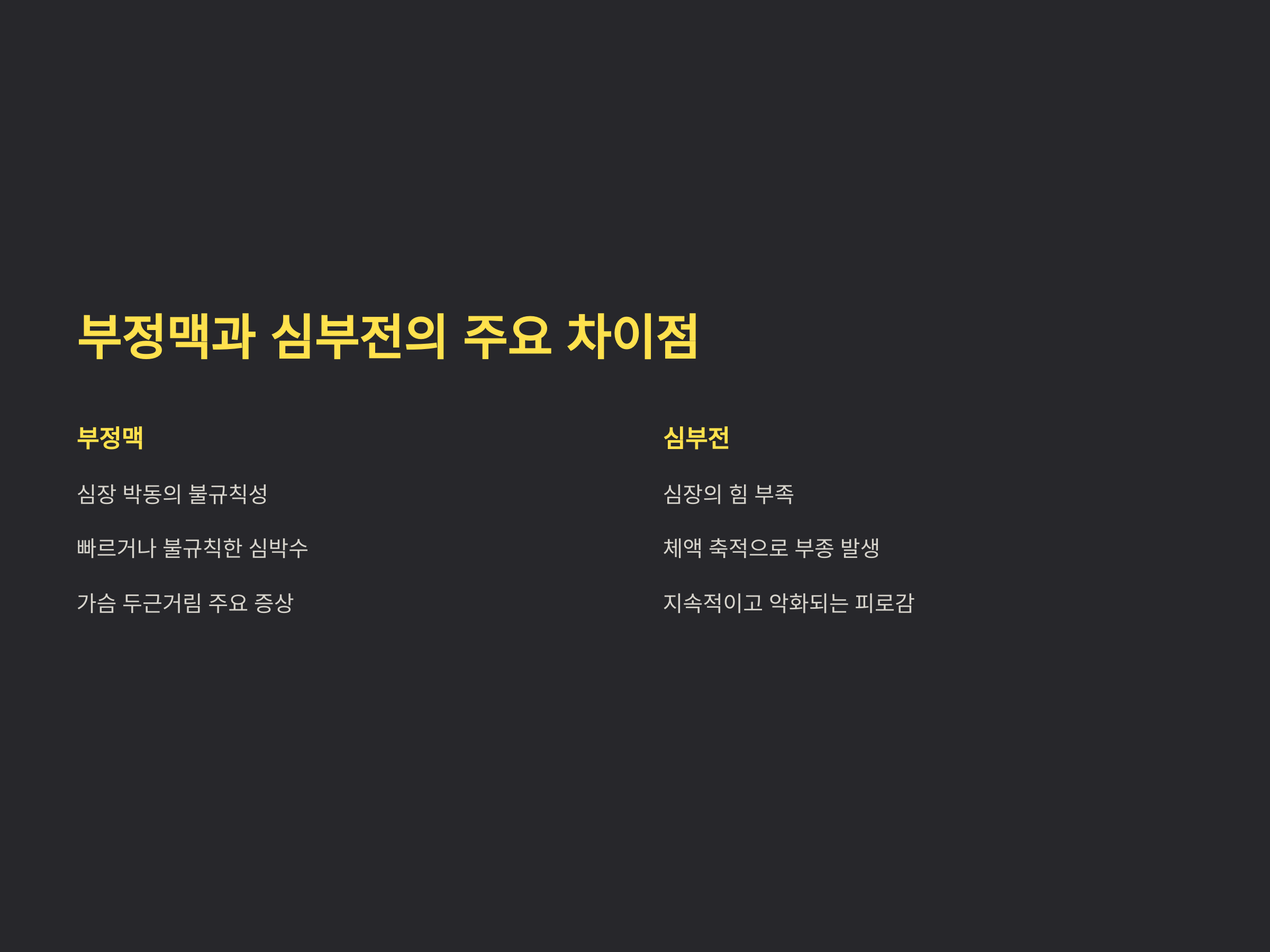 부정맥과 심부전의 주요 차이점