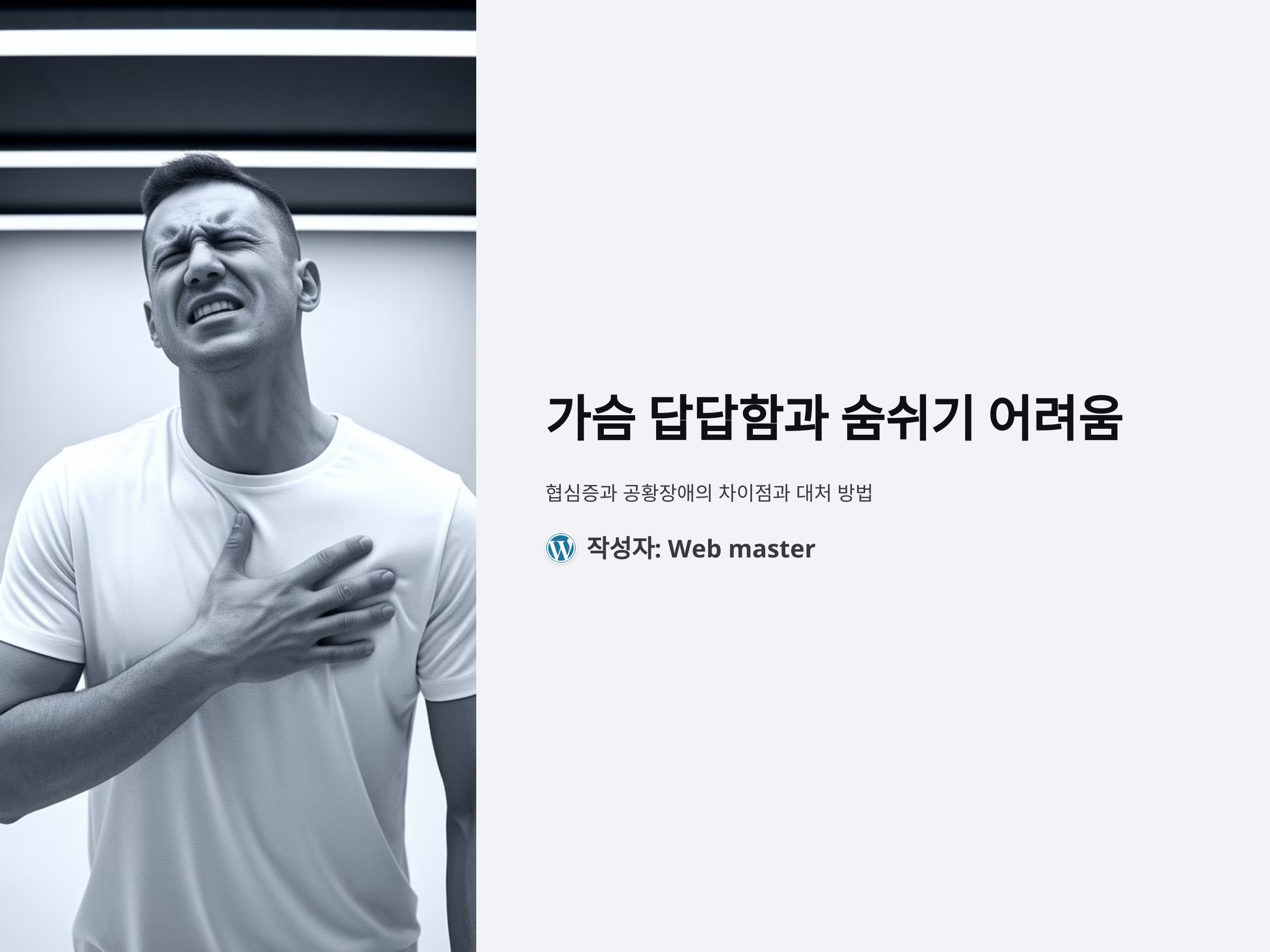 가슴 답답함과 숨쉬기 어려움은 협심증과 공황장애 모두에서 나타날 수 있는 증상입니다. 두 질환의 원인과 증상이 다르므로, 정확한 진단과 적절한 치료가 필요합니다. 증상이 지속되거나 심해질 경우, 즉시 의료기관을 방문하여 전문적인 도움을 받으시기 바랍니다.