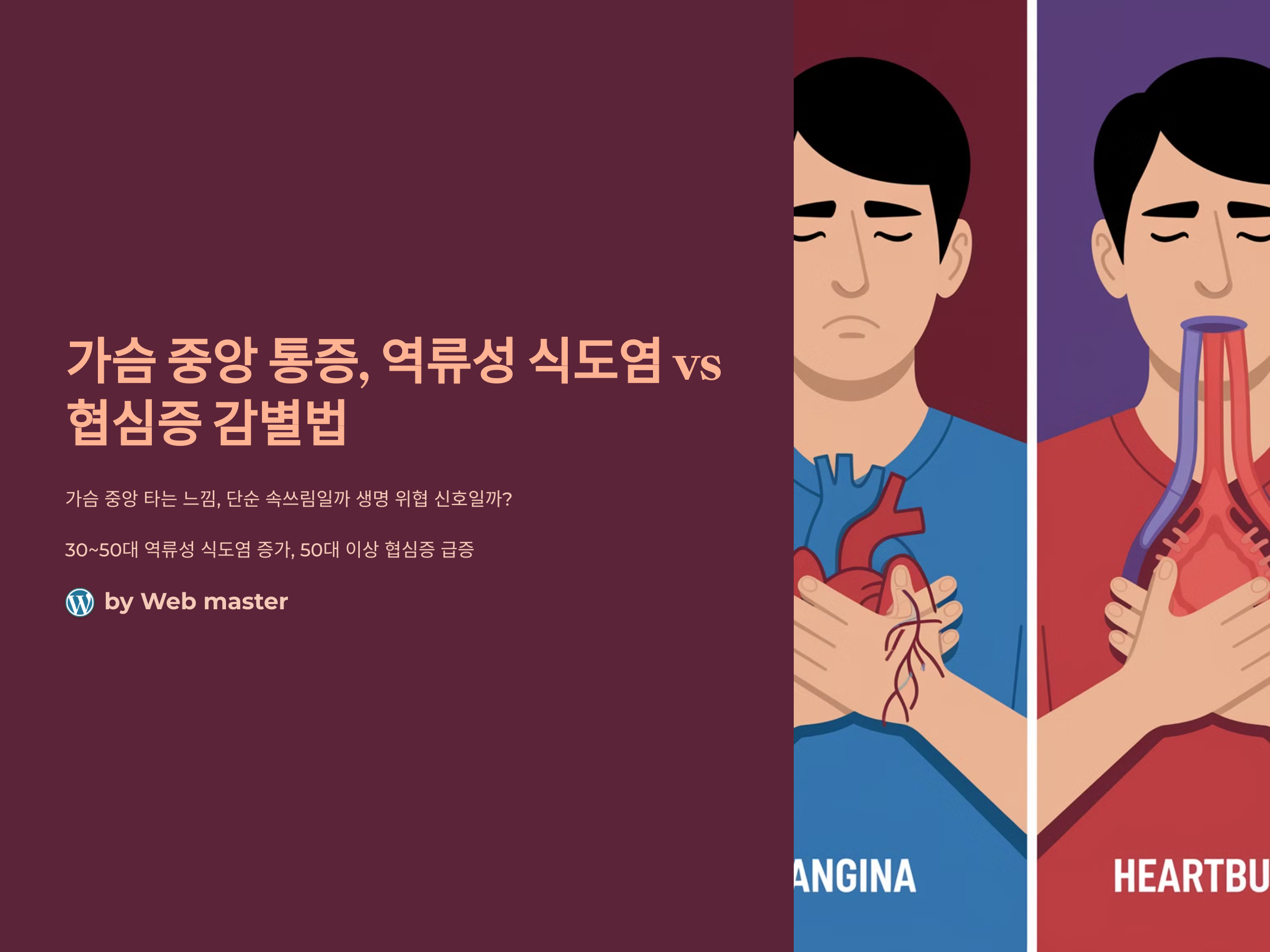 가슴이 타는 듯한 느낌, 단순히 과식이나 자극적인 음식 때문이라고 생각하기 쉽지만, 그 증상이 반복되거나 갑작스럽게 발생했다면 이야기가 달라집니다. 특히, ‘가슴 중앙’에서 타는 듯한 불편함이 지속되거나 심화된다면 단순한 위장 문제일지, 심장과 관련된 질환일지를 반드시 구분해야 합니다. 최근 5년간 건강보험심사평가원 통계에 따르면 역류성 식도염은 30~50대에서 빠르게 증가하고 있고, 반면 협심증은 50대 이상에서 급격히 상승세를 보이고 있습니다. 이러한 트렌드는 연령대별로 두 질환의 감별을 더욱 정확히 해야 할 필요성을 시사합니다.