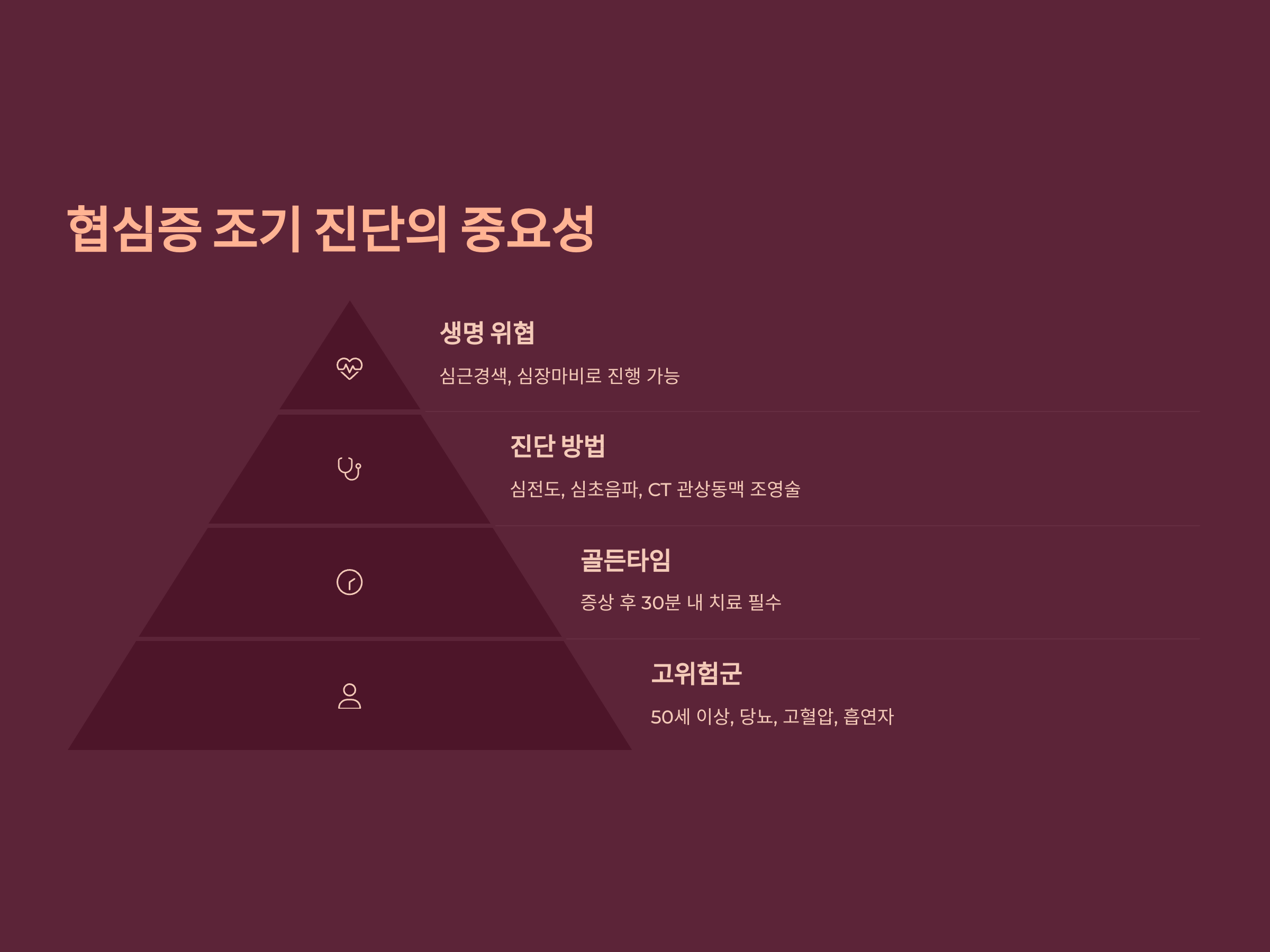 협심증은 일시적인 혈류 장애로 발생하지만, 방치되면 심근경색이나 심장마비로 진행될 수 있습니다. 특히 50세 이상의 중장년층, 당뇨나 고혈압이 있는 사람, 흡연자, 고지혈증 환자라면 단순한 통증이라고 가볍게 여겨선 안 됩니다.