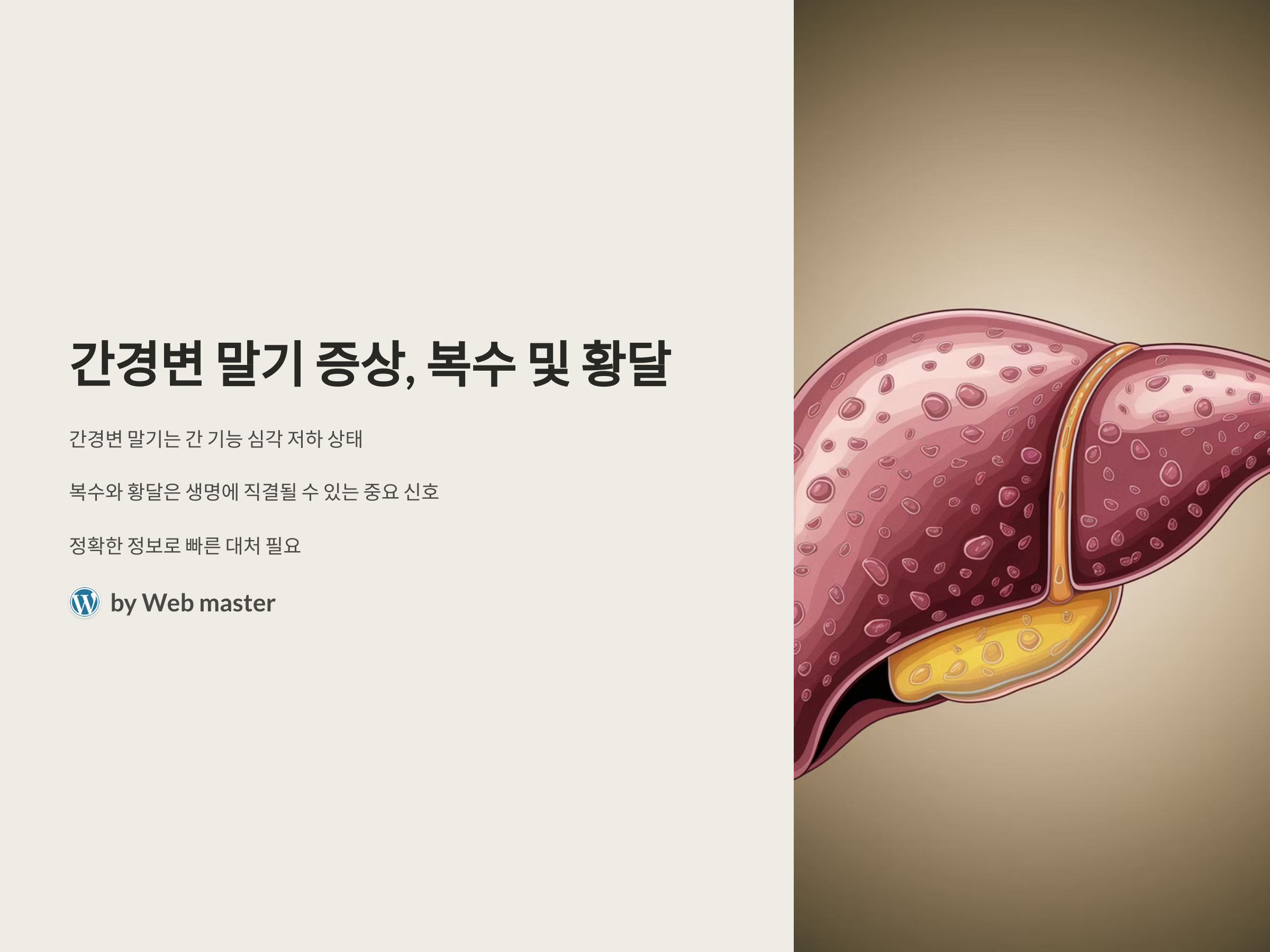간경변 말기는 간 기능이 심각하게 저하된 상태로, 복수와 황달을 포함한 다양한 증상이 동반됩니다. 특히 복수와 황달은 간경변의 마지막 단계에서 나타나는 주요 징후로, 이 증상들은 단순한 불편함이 아니라 환자의 생명에 직결될 수 있는 중요한 신호입니다. 이 글에서는 간경변 말기의 증상 중 복수와 황달에 대해 깊이 있는 정보를 제공하며, 이들을 어떻게 인식하고 대처할 수 있는지에 대해 설명합니다.