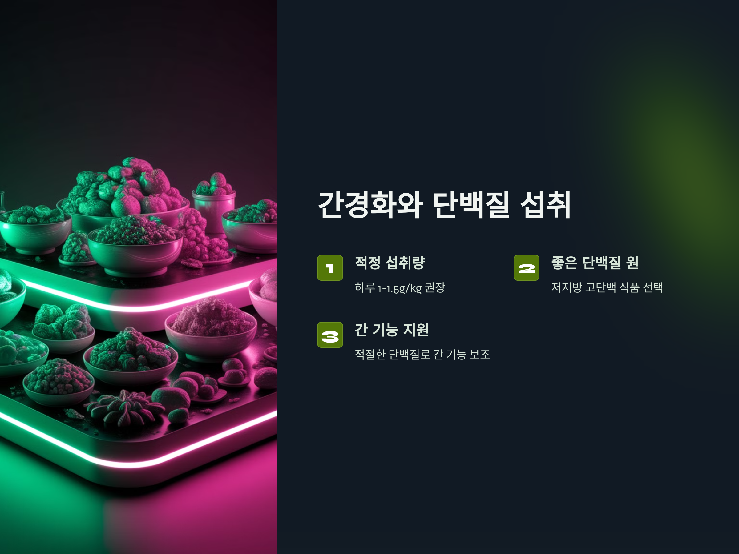 간은 단백질 합성을 담당하는 주요 기관입니다. 그러나 간경화가 진행되면 간의 단백질 합성 능력이 떨어지므로, 혈액 내 알부민과 같은 중요한 단백질 수치가 낮아질 수 있습니다. 이런 경우, 적절한 단백질을 공급하여 간의 기능을 돕는 것이 중요합니다. 하지만 과도한 단백질은 간을 더욱 피로하게 만들 수 있으므로 섭취량을 조절해야 합니다.