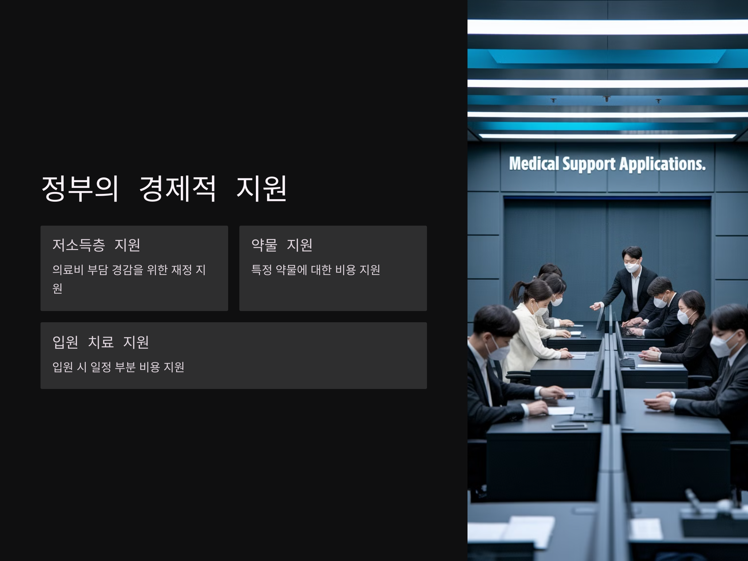 예를 들어, 저소득층 환자들에게는 의료비 부담을 덜어주기 위해 각종 재정 지원을 받을 수 있습니다. 또한, 일정 소득 이하의 환자들은 특정 약물에 대해 지원을 받을 수 있으며, 입원 치료 시에도 일정 부분 지원을 받을 수 있습니다. 정부의 이러한 경제적 지원은 간경화 환자들이 치료를 지속할 수 있도록 도와주며, 생활 수준을 높이는 데에도 기여합니다.