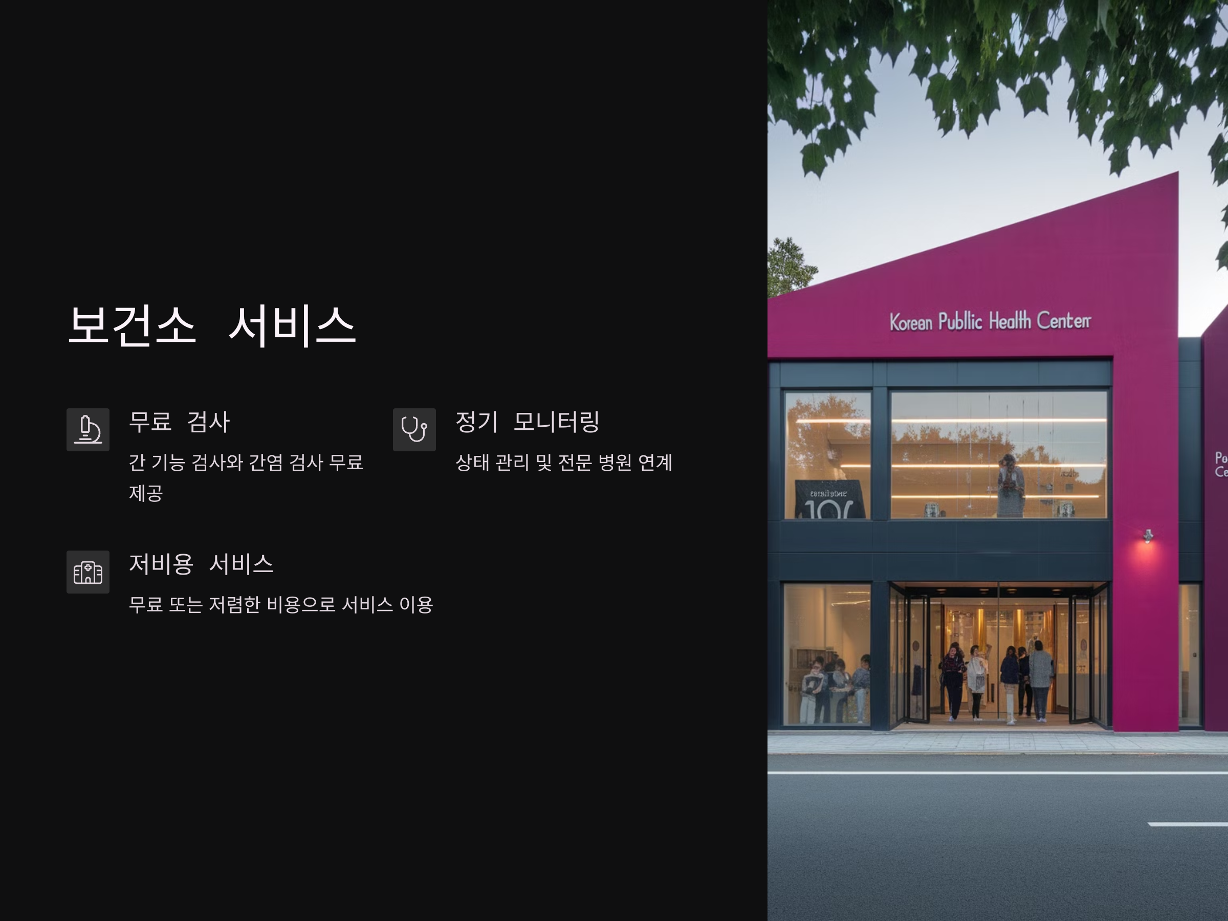 보건소에서는 간경화에 대한 예방적 조치를 취하기 위해 간 기능 검사나 간염 검사를 무료로 제공하기도 합니다. 또한, 간경화가 진행된 환자에게는 정기적인 모니터링을 통해 상태를 관리하고, 필요시 전문 병원과의 연계를 돕는 서비스도 제공됩니다.