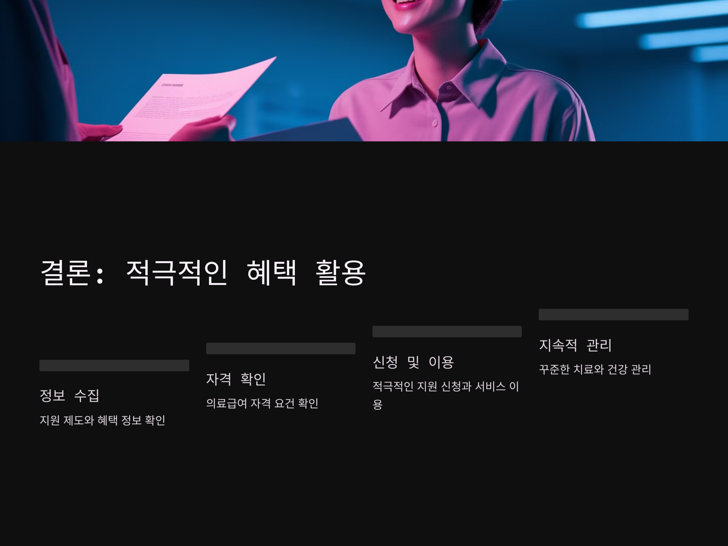 의료급여 혜택을 받기 위해서는 일정한 소득 기준을 충족해야 하며, 그 후 치료가 필요한 병원에서 의료비 지원을 받을 수 있습니다. 간경화와 같은 만성 질환의 경우, 치료비가 지속적으로 발생하므로 의료급여 혜택을 통해 꾸준한 관리와 치료를 받는 것이 중요합니다. 의료급여는 입원비, 외래진료비, 약제비 등 다양한 항목에 대해 지원이 가능합니다.