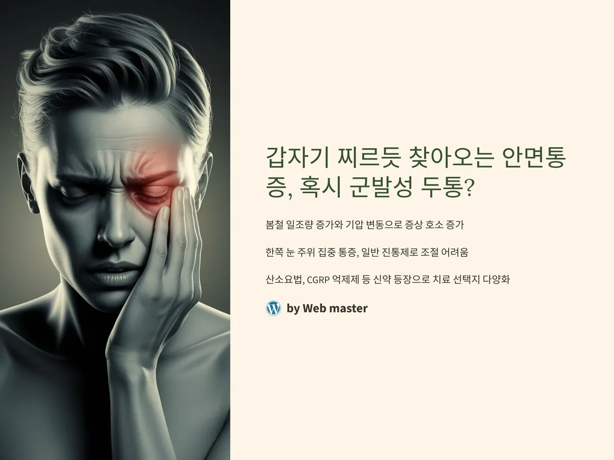 최근 건강 포털과 신경과 전문 커뮤니티에서 '군발성 두통'과 '극심한 안면 통증'에 대한 언급이 눈에 띄게 증가하고 있습니다. 특히 2025년 들어 봄철 일조량 증가와 기압 변동의 영향으로 이 증상을 호소하는 사람들이 많아졌다는 통계가 나왔습니다. 군발성 두통은 주로 한쪽 눈 주위에 집중된 통증으로, 전형적인 안면신경통과는 다른 양상을 보입니다. 일반 진통제로는 통증 조절이 어렵고, 오랜 기간 방치하면 만성화될 수 있다는 점에서 조기 진단이 중요합니다. 최근에는 산소요법, CGRP 억제제 등 신약이 등장하면서 치료 선택지가 다양해지고 있는 추세입니다. 이 글에서는 정확한 증상 구분부터 최신 치료법까지, 군발성 두통에 대해 꼭 알아야 할 모든 정보를 정리했습니다. 지금 바로 확인해보세요.