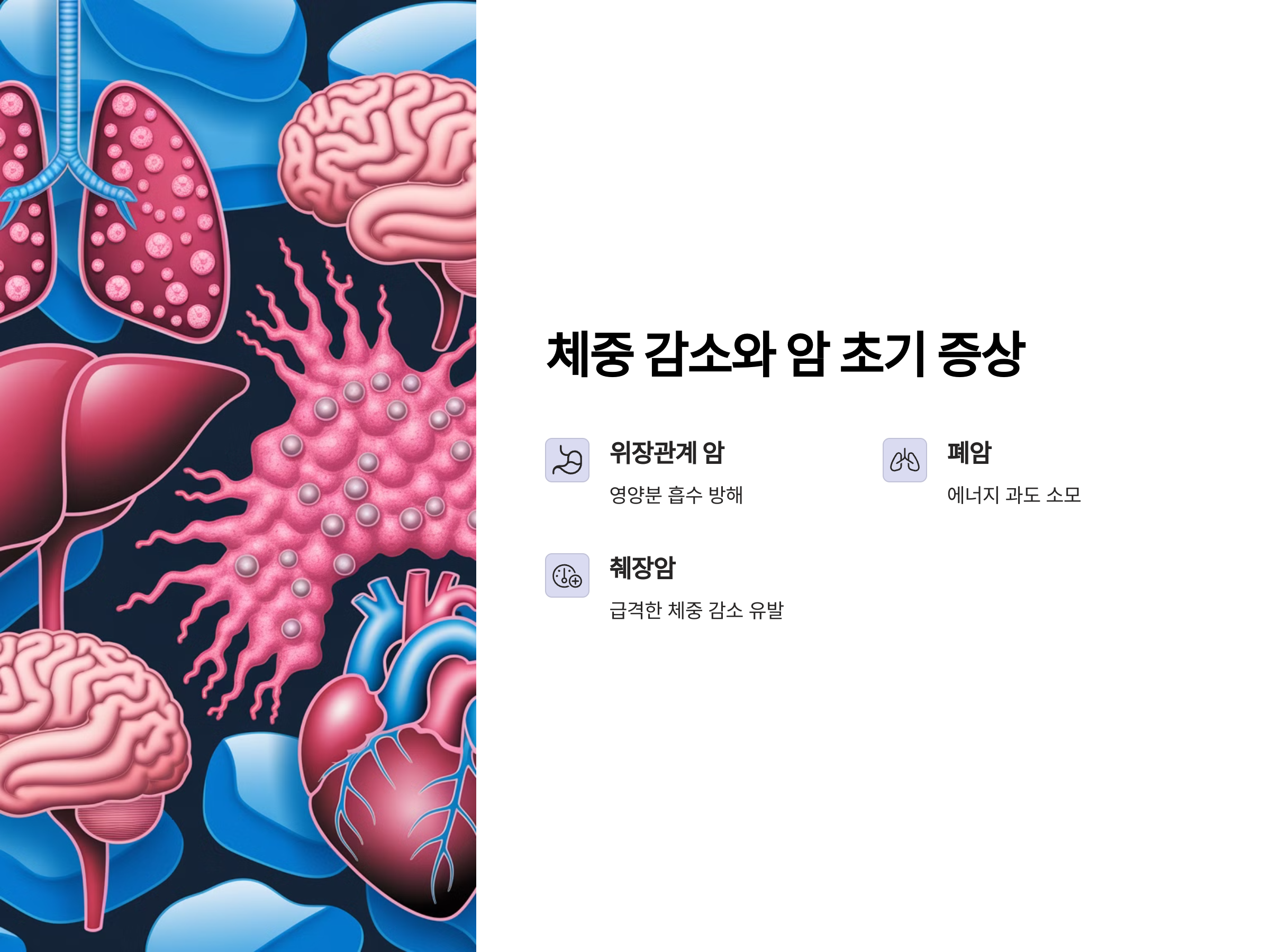 암 초기 증상은 매우 다양하며, 사람마다 다르게 나타날 수 있습니다. 갑자기 체중이 감소했다면, 다음과 같은 추가적인 신호들을 체크해보는 것이 중요합니다.