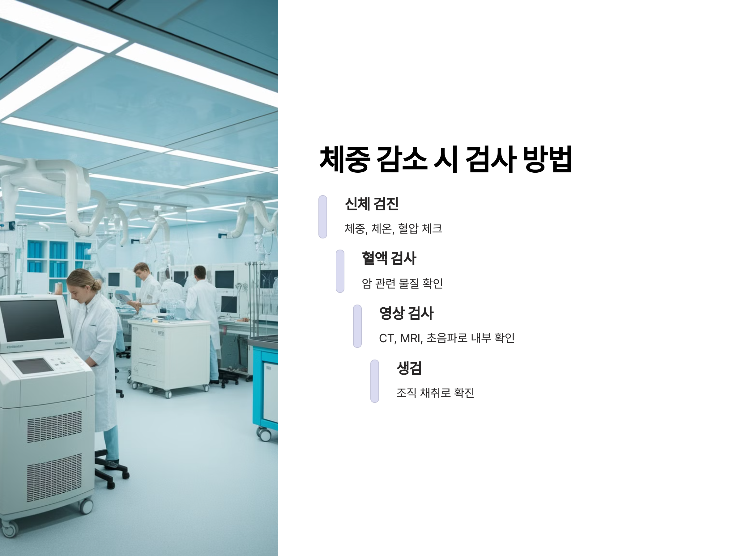 체중 감소가 의심되면, 빠르게 전문적인 검사를 받는 것이 중요합니다. 의료 기관에서는 다양한 방법으로 체중 감소의 원인을 파악합니다.