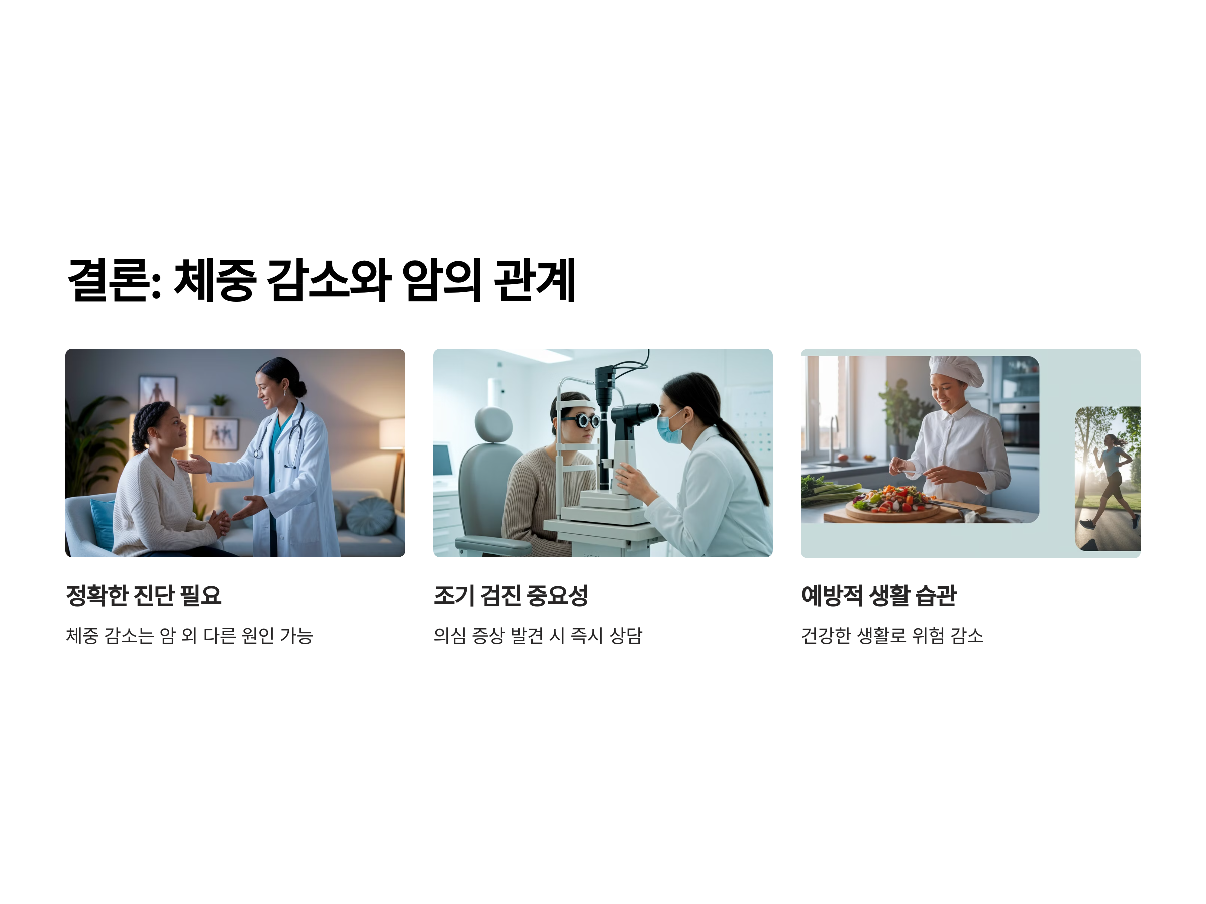이 글을 통해 암 초기 증상에 대한 이해를 돕고, 체중 감소와 관련된 다른 원인들도 살펴보았습니다. 만약 체중 감소와 함께 다른 의심스러운 증상이 있다면, 즉시 전문가와 상담을 권장합니다.