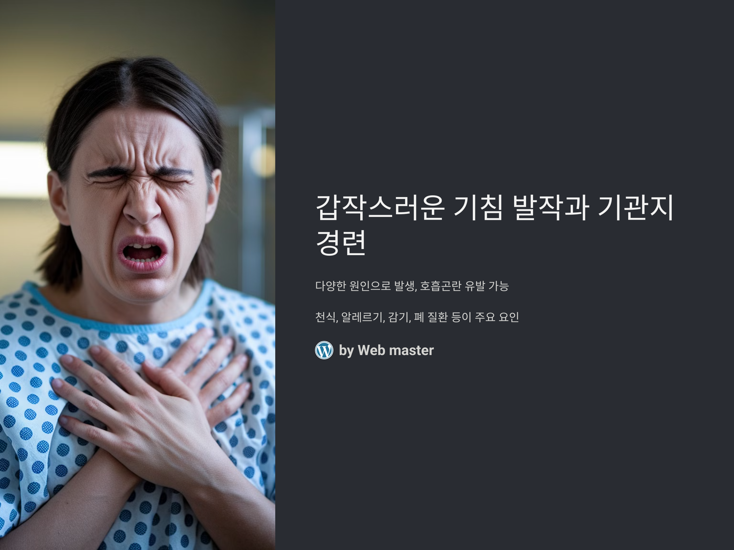 기관지 경련과 갑작스러운 기침 발작은 일상에서 누구나 겪을 수 있는 증상이지만, 빈번하거나 심한 경우 기저 질환이 있을 가능성이 높습니다. 원인을 파악하고 적절한 예방 및 치료 방법을 실천하여 건강한 호흡을 유지하는 것이 중요합니다.