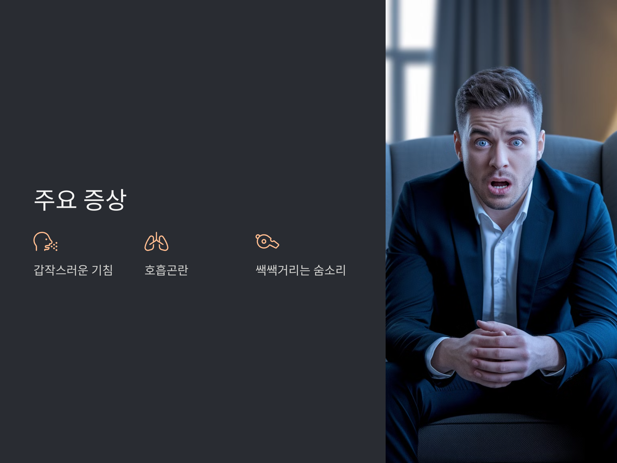 - 갑작스러운 기침 발작: 마른기침이 지속되거나 심한 기침이 반복됨