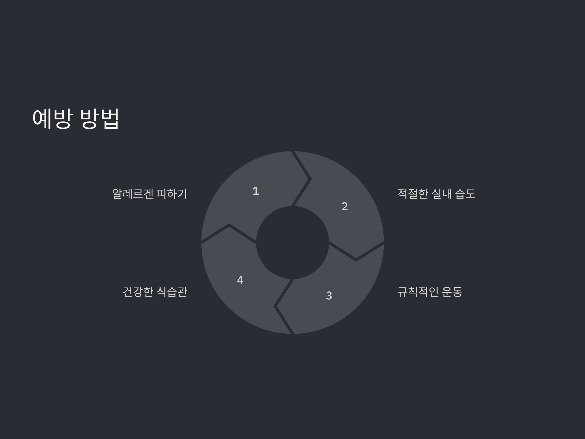 - 알레르겐 피하기: 꽃가루, 미세먼지 등 기관지를 자극하는 요인을 차단