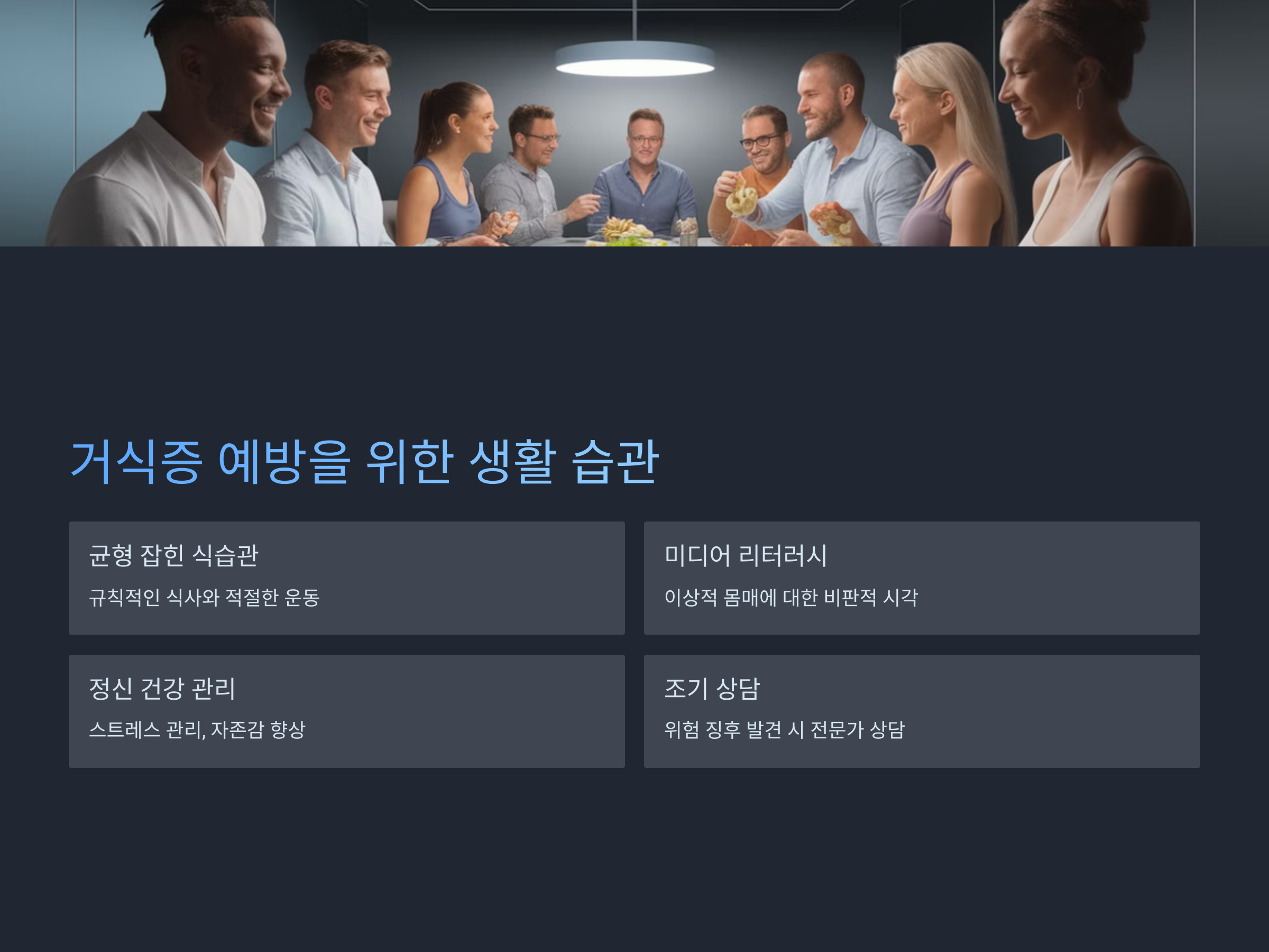 거식증을 예방하기 위해서는 건강한 식습관과 정신 건강 관리를 병행해야 합니다.