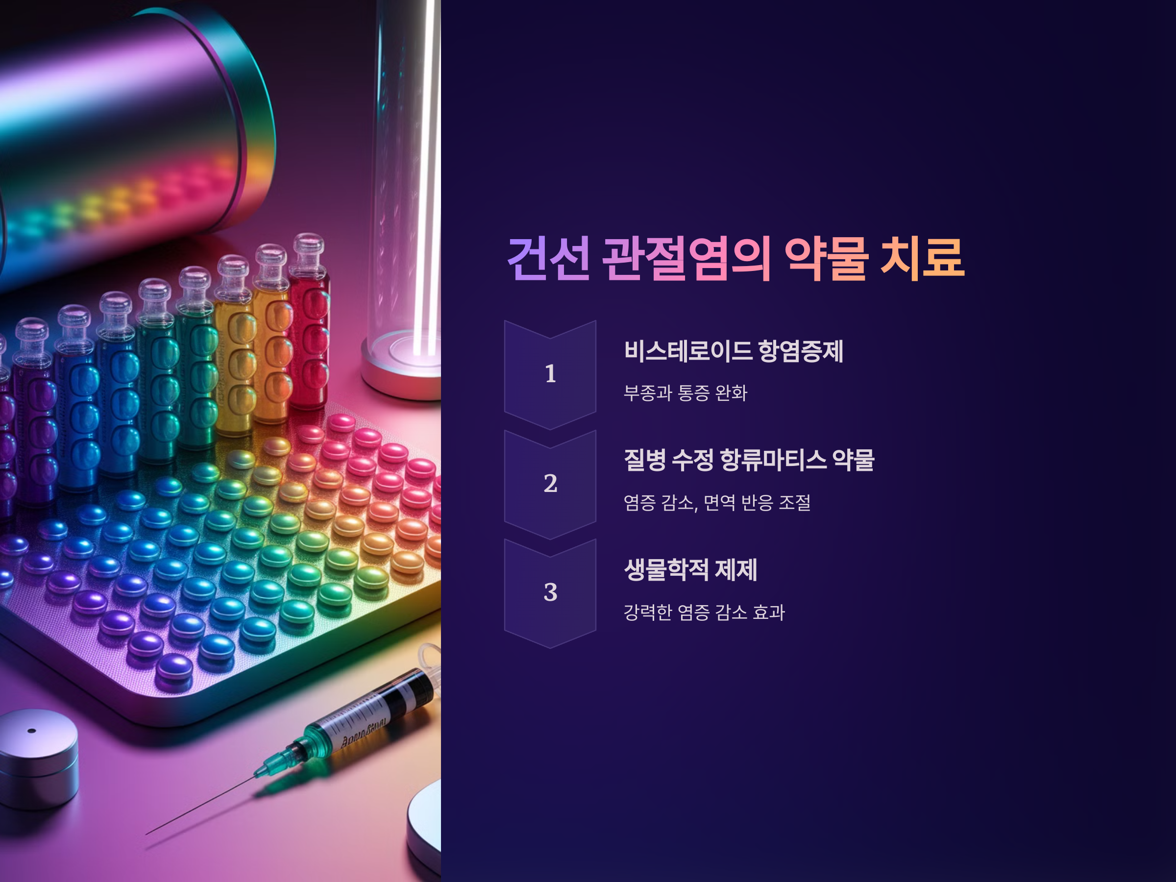- 비스테로이드 항염증제(NSAIDs): 부종과 통증을 완화하는 데 도움이 됩니다. 일반적으로 경구약이나 국소 약물로 사용됩니다.
