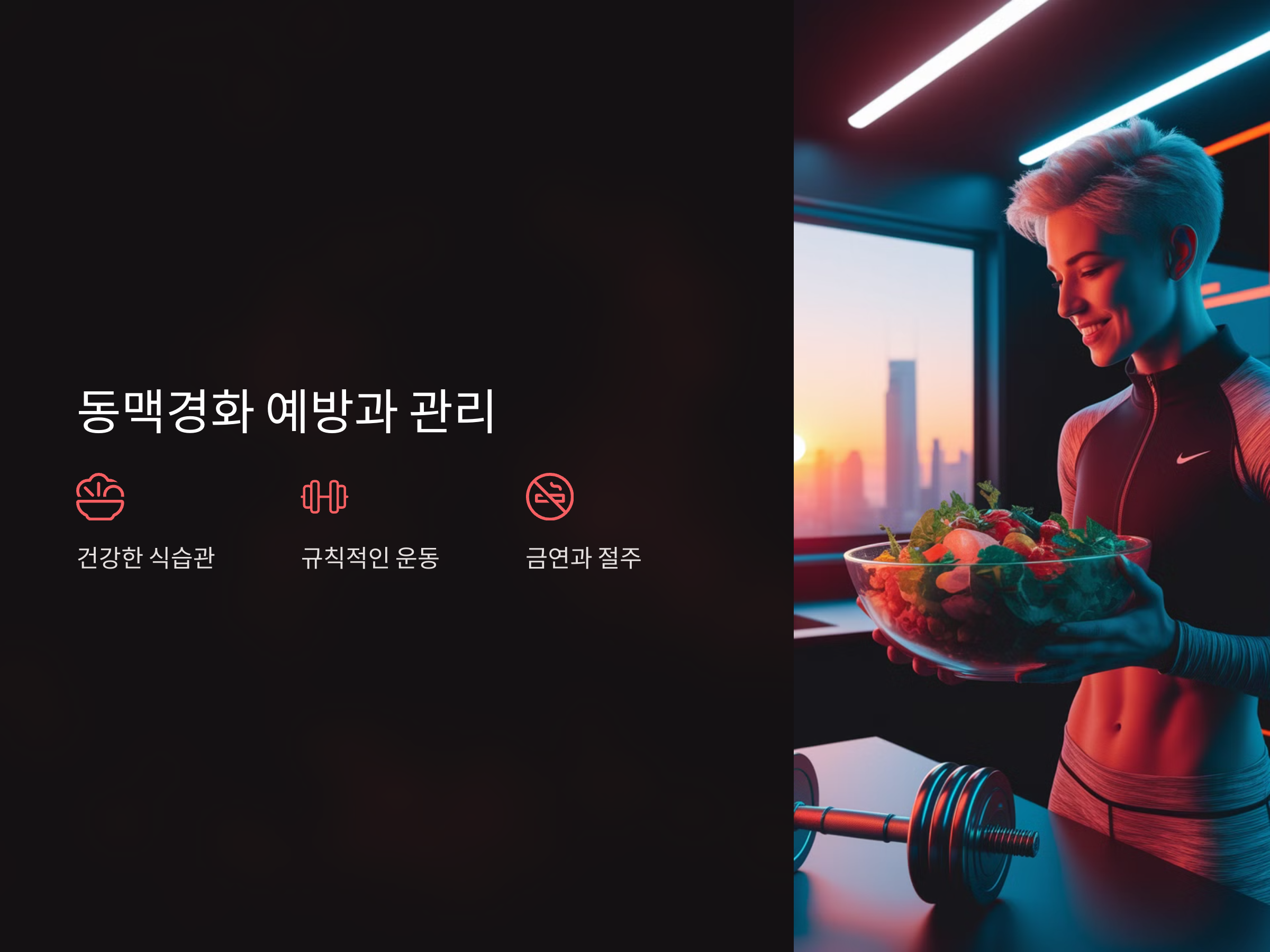 동맥경화는 건강한 식습관과 규칙적인 운동으로 예방할 수 있습니다. 고지혈증과 고혈압을 관리하고, 금연과 절주를 실천하는 것이 중요합니다. 또한, 체중 관리와 스트레스 관리를 통해 혈관 건강을 지킬 수 있습니다.