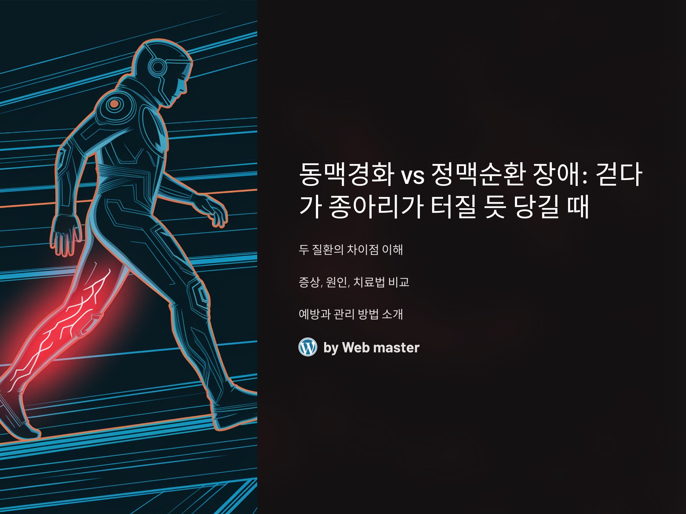 걷다가 종아리가 터질 듯 당기거나 통증을 느낄 때, 그 원인으로 동맥경화와 정맥순환 장애가 자주 거론됩니다. 하지만 두 질환은 증상은 유사하더라도, 발생 원인과 치료 방법이 다릅니다. 이 글에서는 동맥경화와 정맥순환 장애의 차이를 명확하게 이해하고, 각 질환에 어떻게 대처할 수 있는지에 대해 구체적으로 알아보겠습니다.