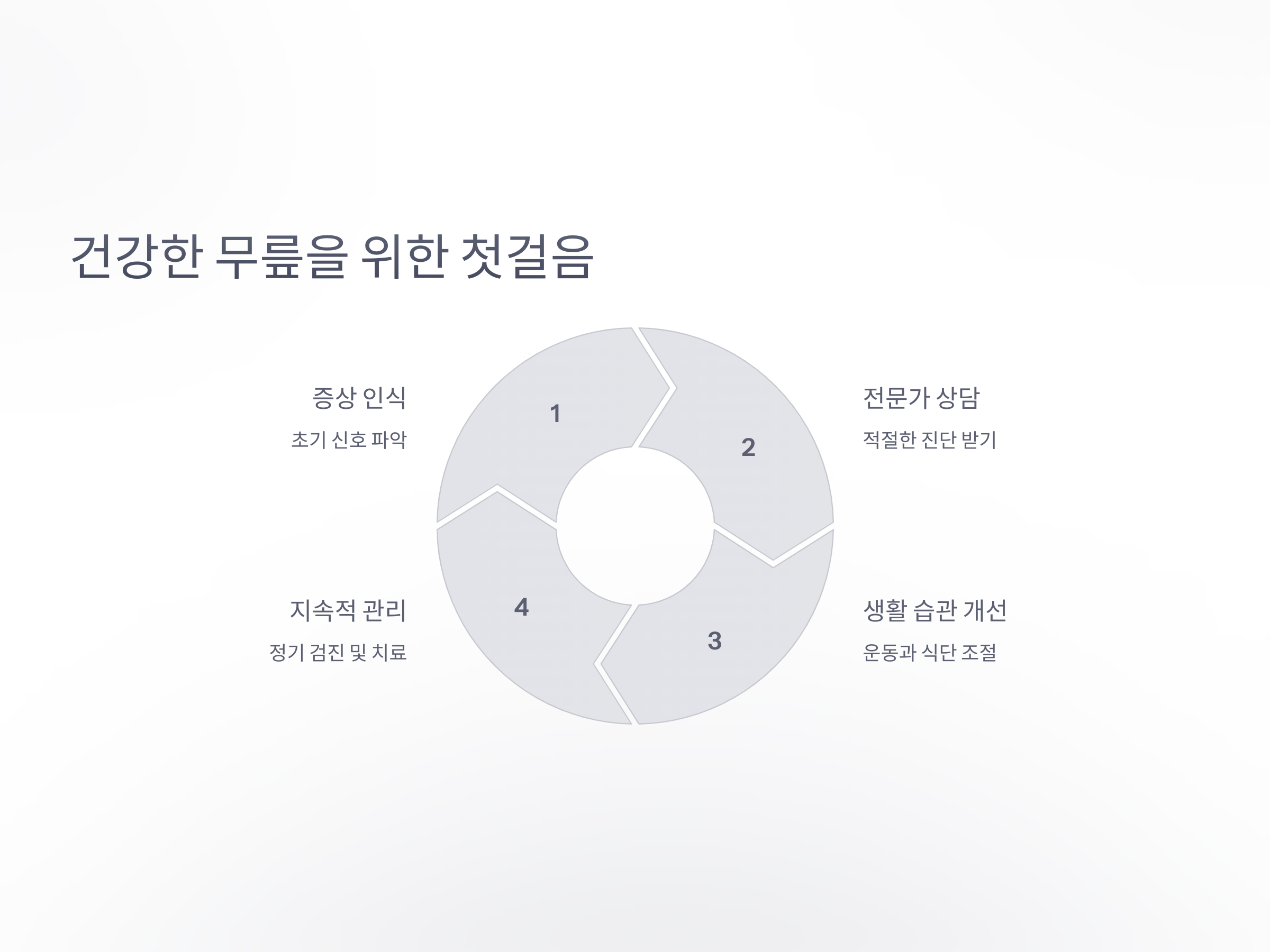퇴행성 관절염은 조기에 발견하고 관리하는 것이 중요합니다. 통증을 무시하지 말고, 적절한 치료와 예방을 통해 관절 건강을 지키세요. 무릎의 통증을 줄이고, 더욱 건강한 삶을 영위하기 위한 첫걸음이 될 것입니다.
