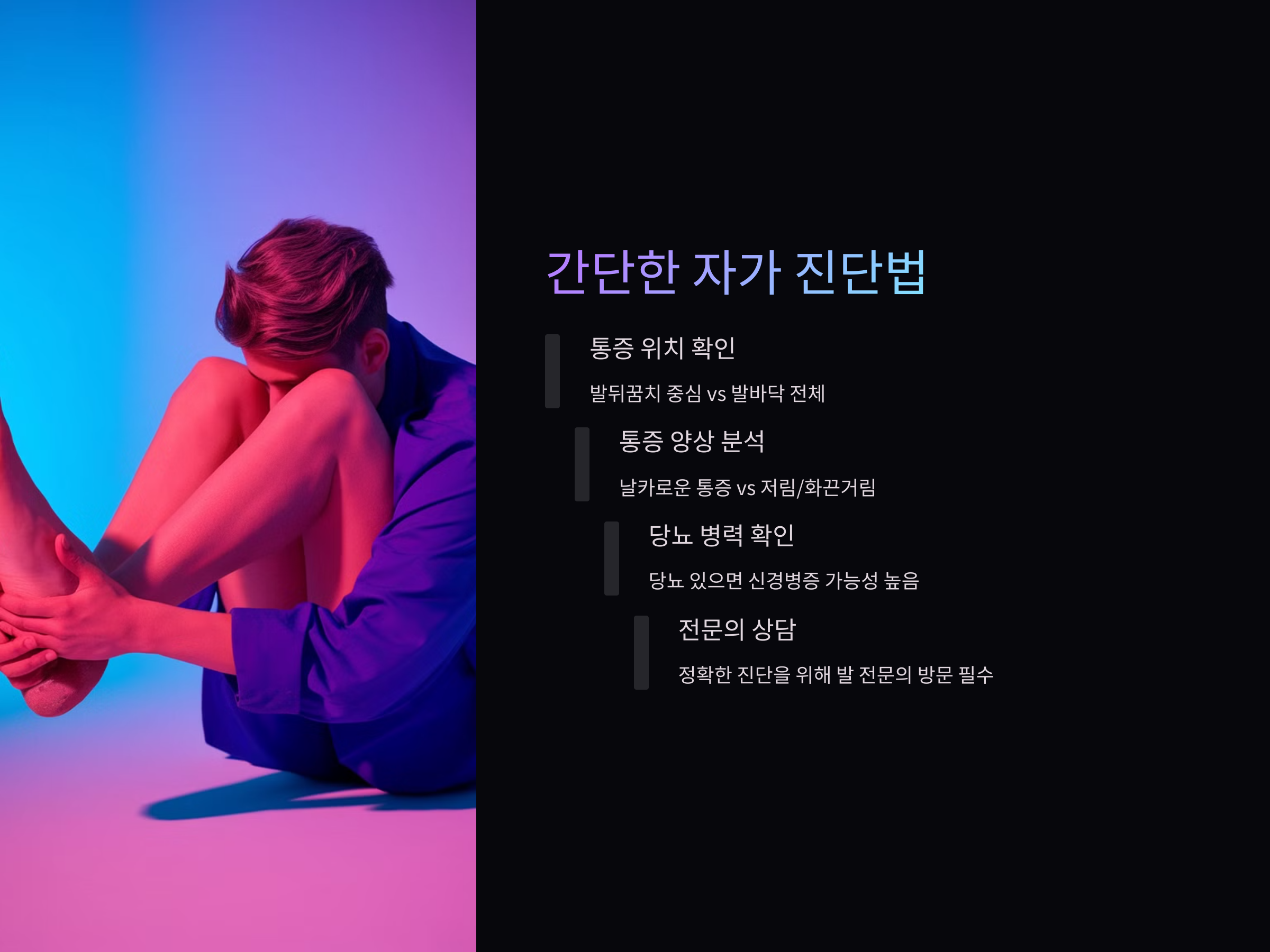 걸을 때 발바닥이 찌릿하고 화끈함 족저근막염 vs 당뇨병성 신경병증