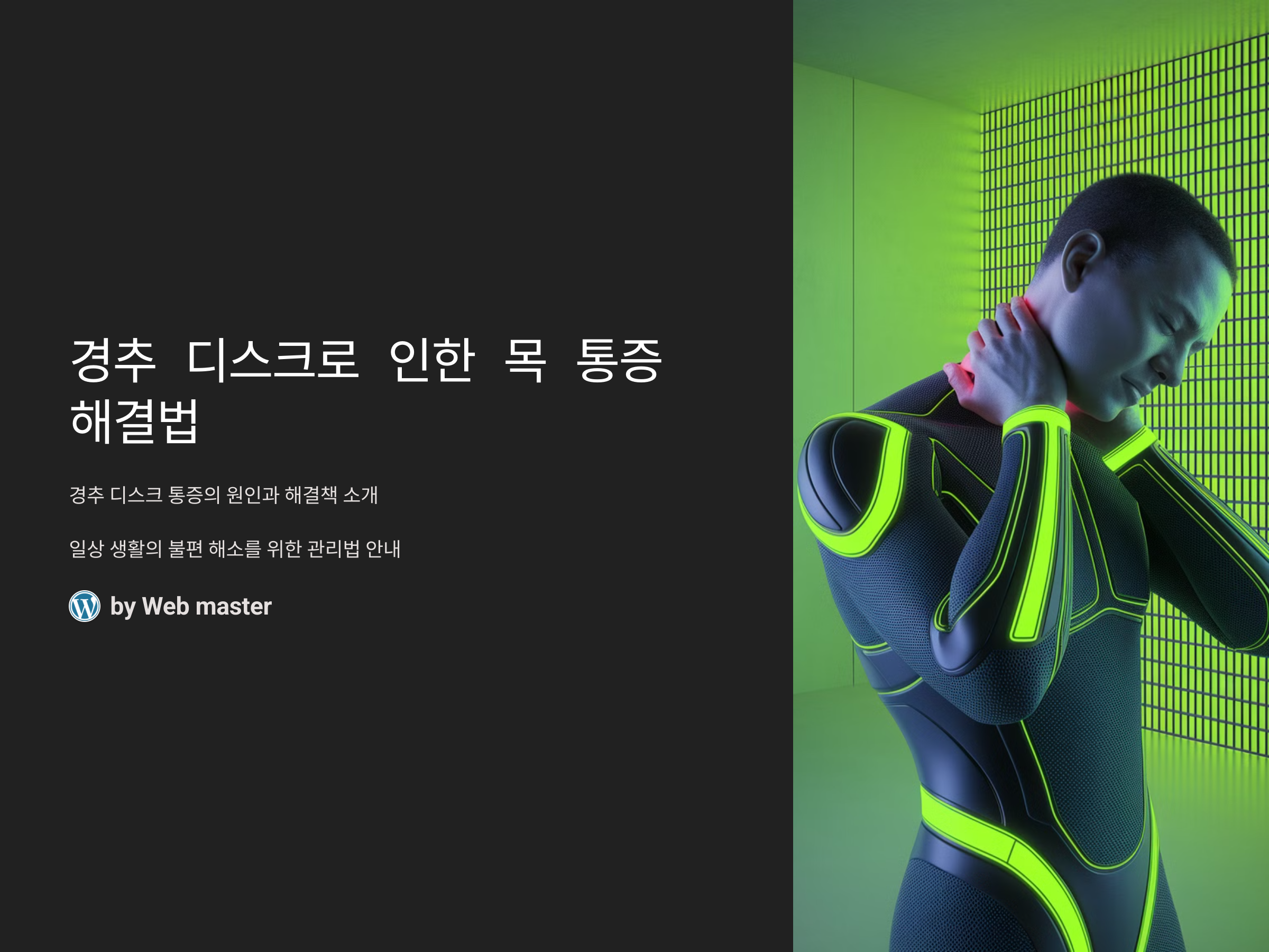 경추 디스크로 인한 목 통증은 매우 흔한 문제지만, 그 원인과 해결책에 대해 충분히 알고 있으면 관리가 훨씬 쉬워집니다. 목 통증은 일상 생활에 큰 불편을 초래할 수 있는데, 대부분은 목에 있는 디스크에 문제가 생기면서 발생합니다. 오늘은 경추 디스크의 주요 증상부터 치료법까지, 통증을 완화하고 예방하는 방법을 알아보겠습니다.