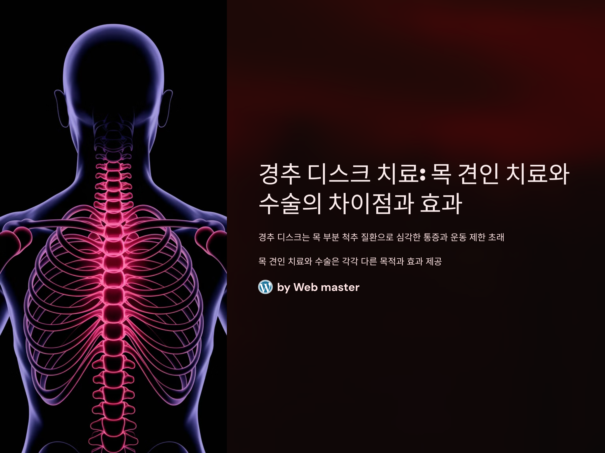 경추 디스크 문제를 겪고 있는 많은 사람들은 목 통증과 팔 저림, 심지어 손의 약화 등 다양한 증상을 경험합니다. 이러한 증상들은 치료하지 않으면 점차 악화될 수 있기 때문에, 적절한 치료 방법을 찾는 것이 중요합니다. 목 견인 치료와 수술 치료는 각각 다른 방식으로 경추 디스크를 해결할 수 있는 방법을 제공합니다.