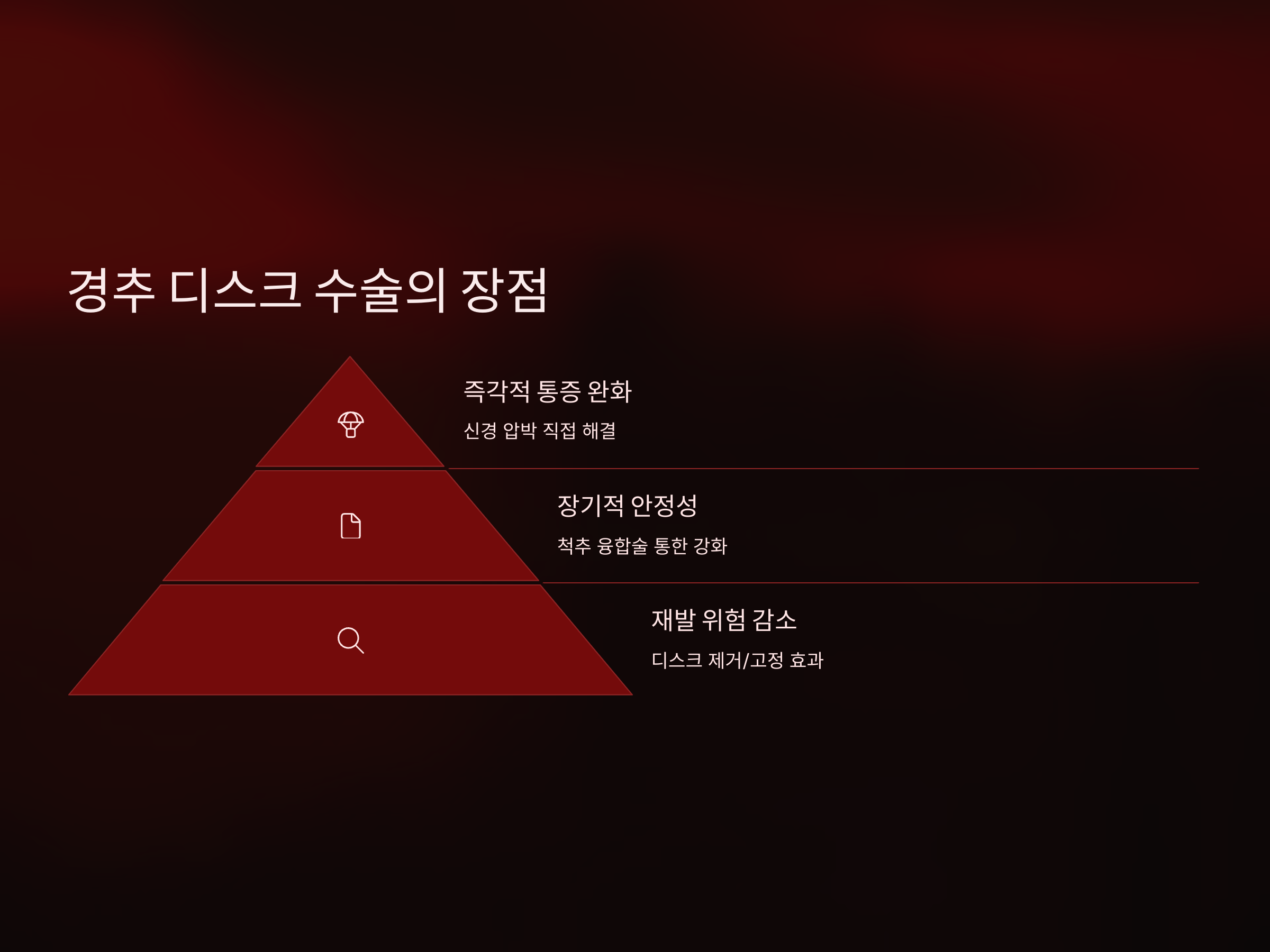 - 즉각적인 통증 완화: 신경 압박을 직접적으로 해결하여 빠르게 통증을 줄일 수 있습니다.