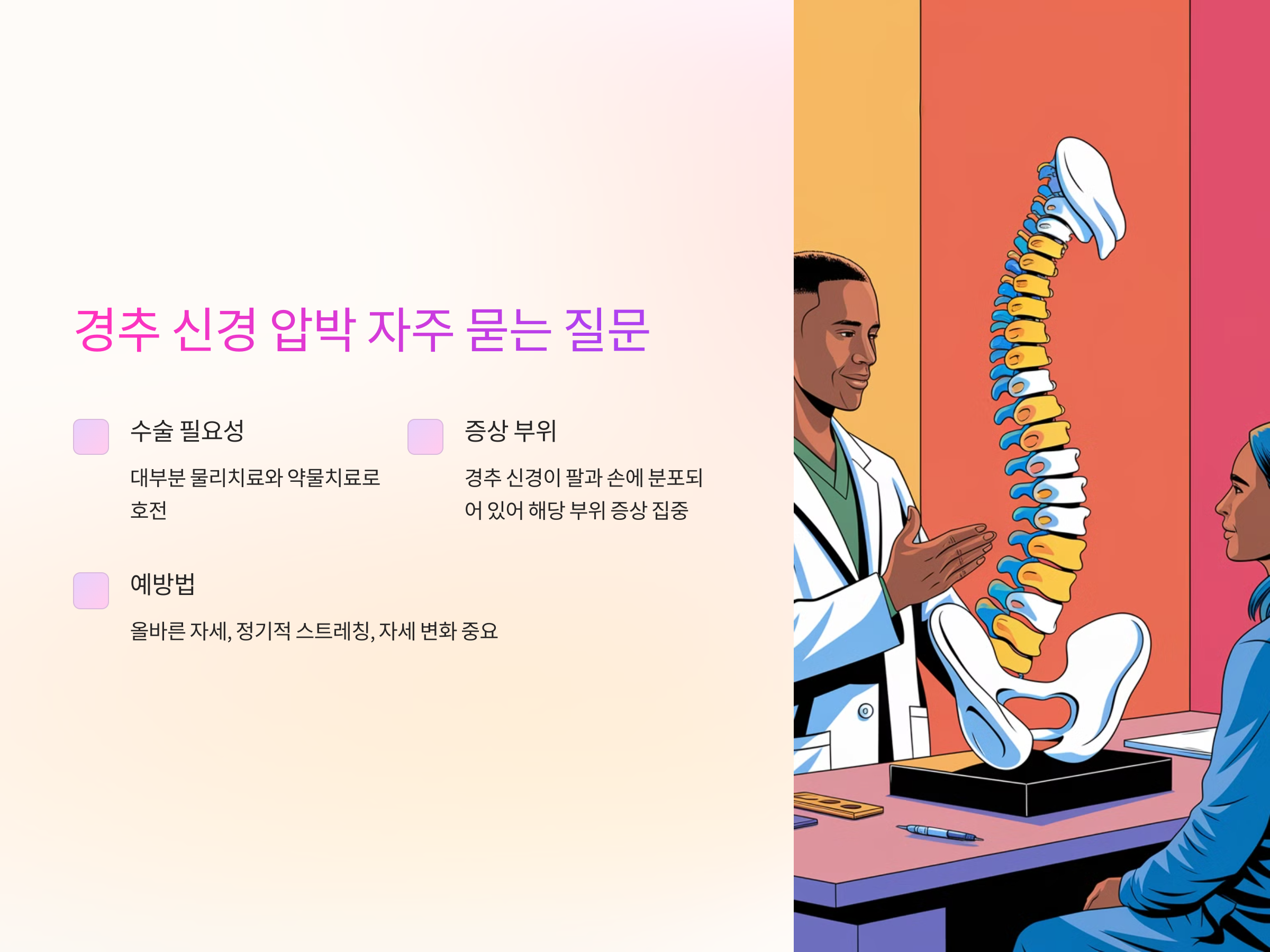 경추 신경 압박과 관련된 몇 가지 자주 묻는 질문들을 정리해 보았습니다.