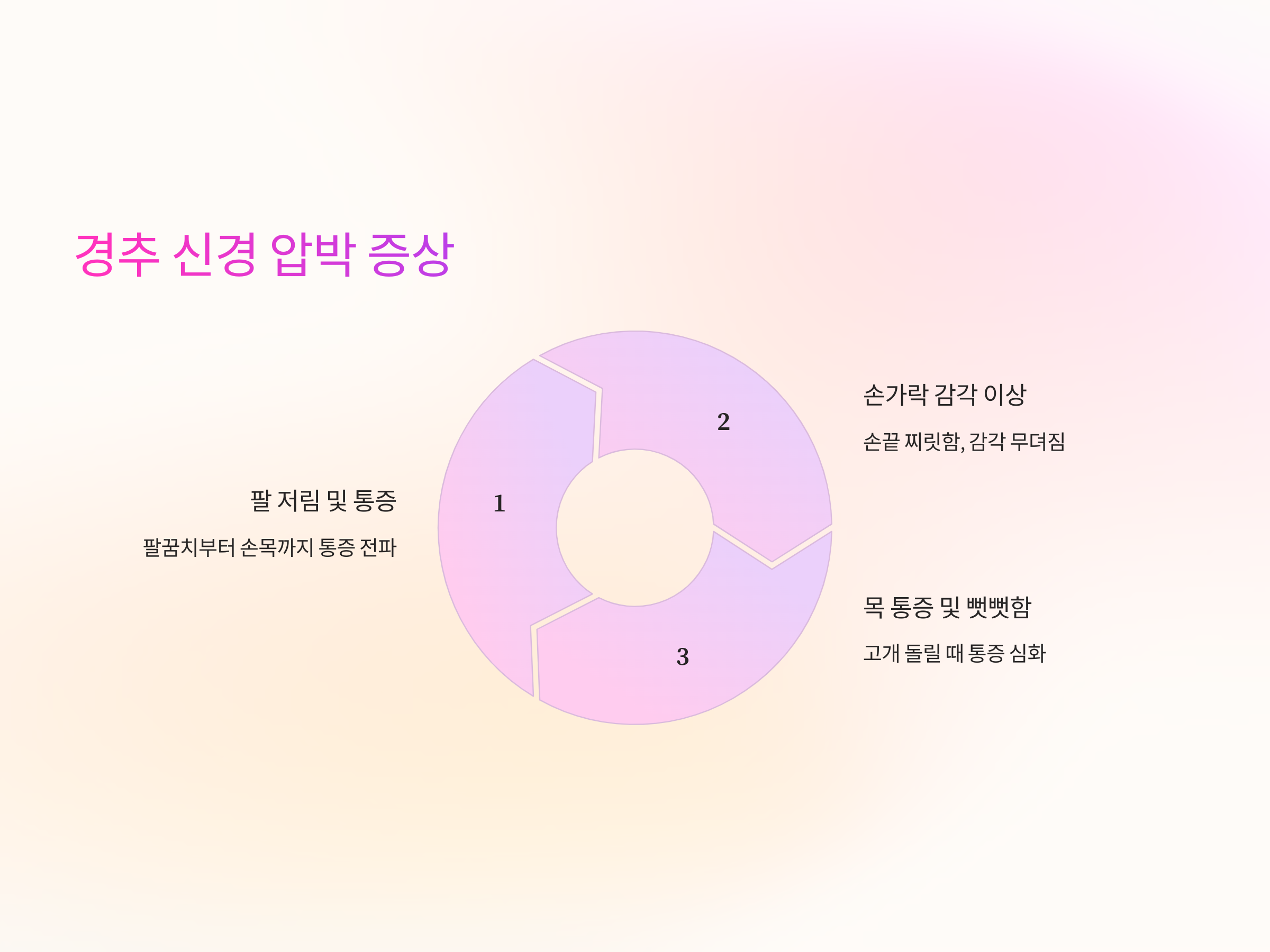 경추 신경 압박의 증상은 다양한 형태로 나타날 수 있으며, 그 증상이 팔과 손가락에 집중되는 경우가 많습니다. 대표적인 증상으로는 팔 저림, 손가락의 감각 이상, 목의 통증 등이 있습니다.