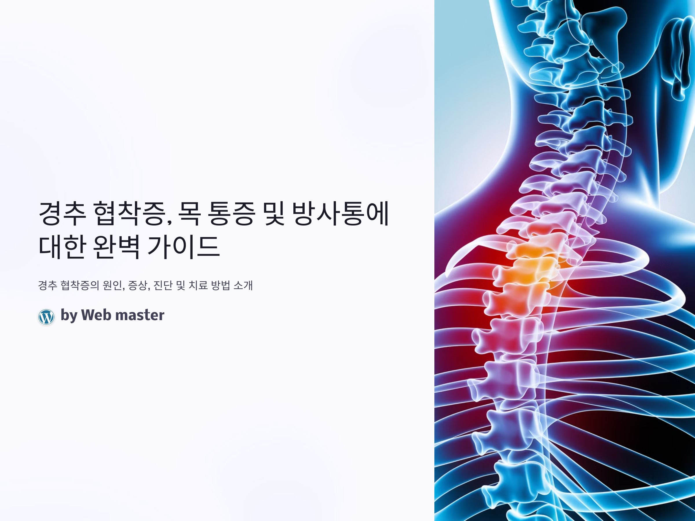 경추 협착증은 목의 척추 뼈와 연골이 퇴화하거나 손상되어 척추관이 좁아지고, 이로 인해 신경이 압박되는 상태를 말합니다. 경추 협착증이 발생하면 목 통증은 물론, 팔이나 손으로 방사되는 통증이 동반될 수 있습니다. 이 글에서는 경추 협착증의 원인, 증상, 진단 및 치료 방법을 설명하고, 특히 방사통을 완화하는 방법에 대해서도 자세히 알아보겠습니다.