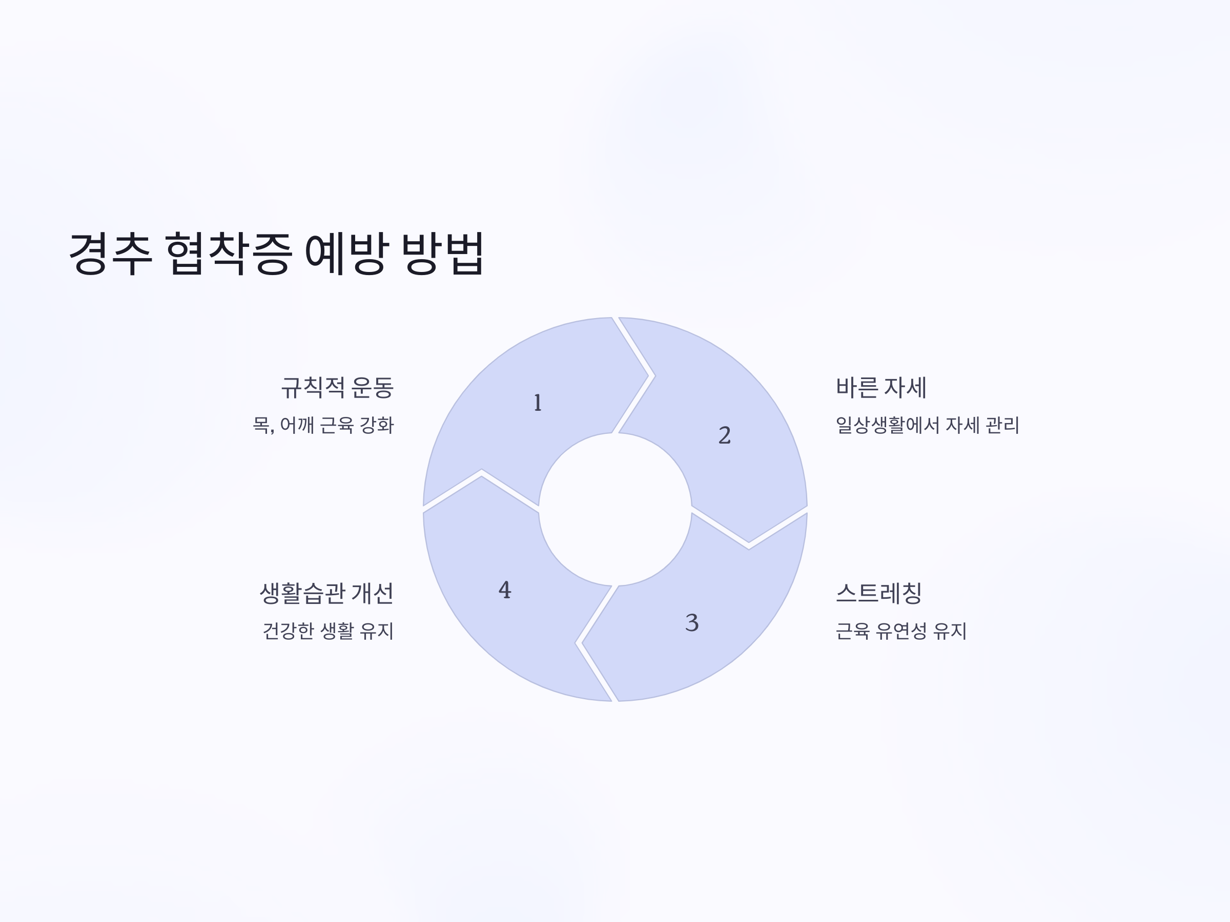 - 스트레칭과 운동: 목과 어깨 근육을 풀어주는 스트레칭과 운동은 통증 완화에 효과적입니다. 전문가의 지도 아래 운동을 하는 것이 좋습니다.