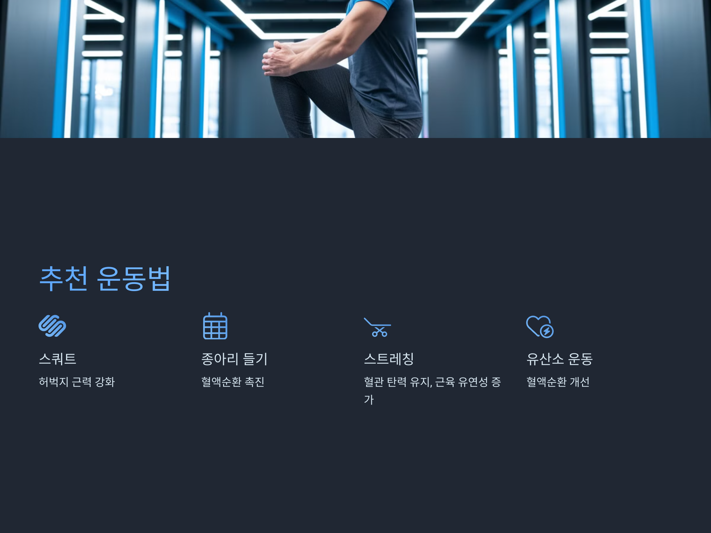 - 스트레칭: 혈관 탄력 유지 및 근육 유연성 증가