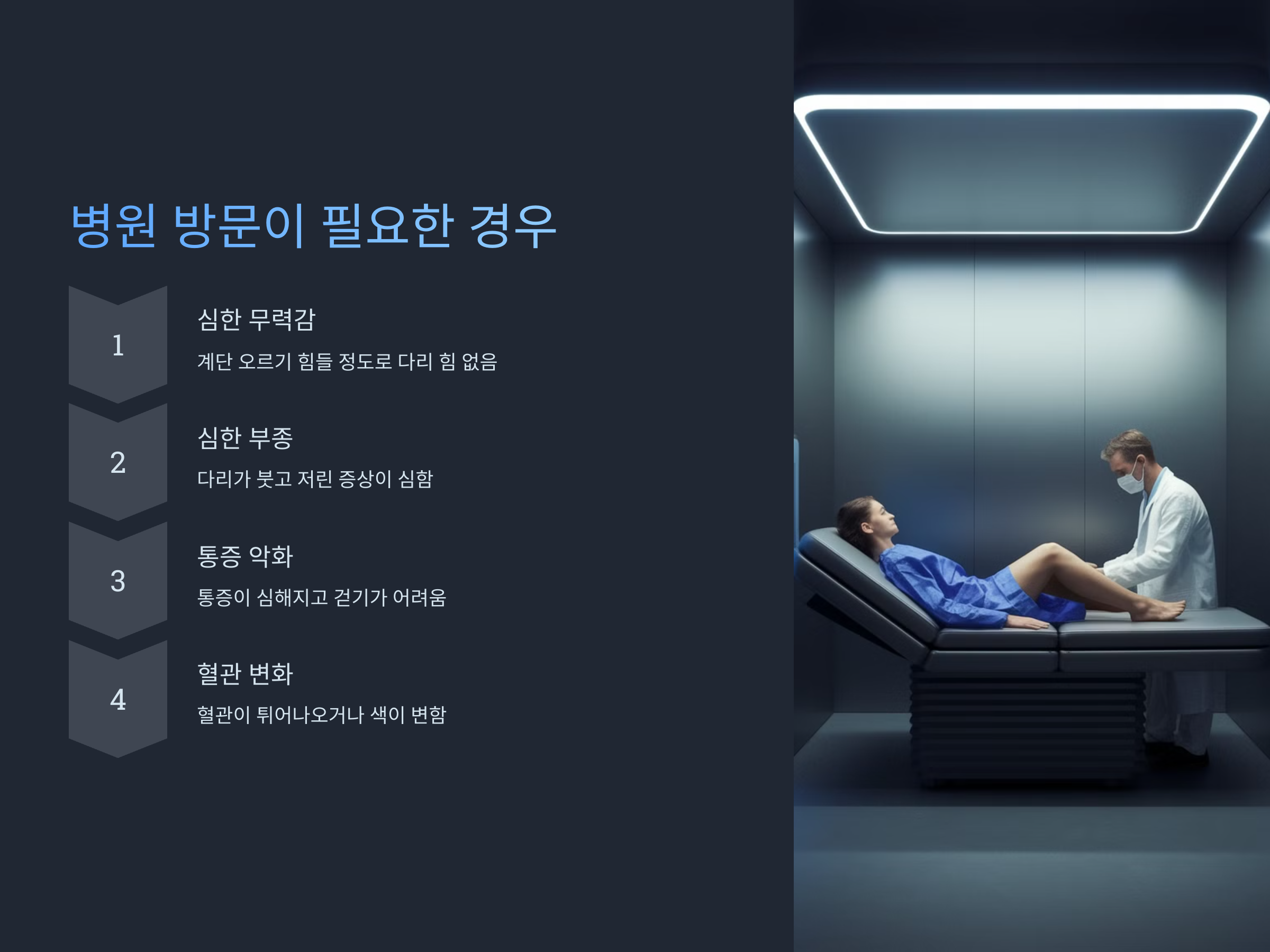 - 다리에 혈관이 도드라져 보이거나 색이 변함