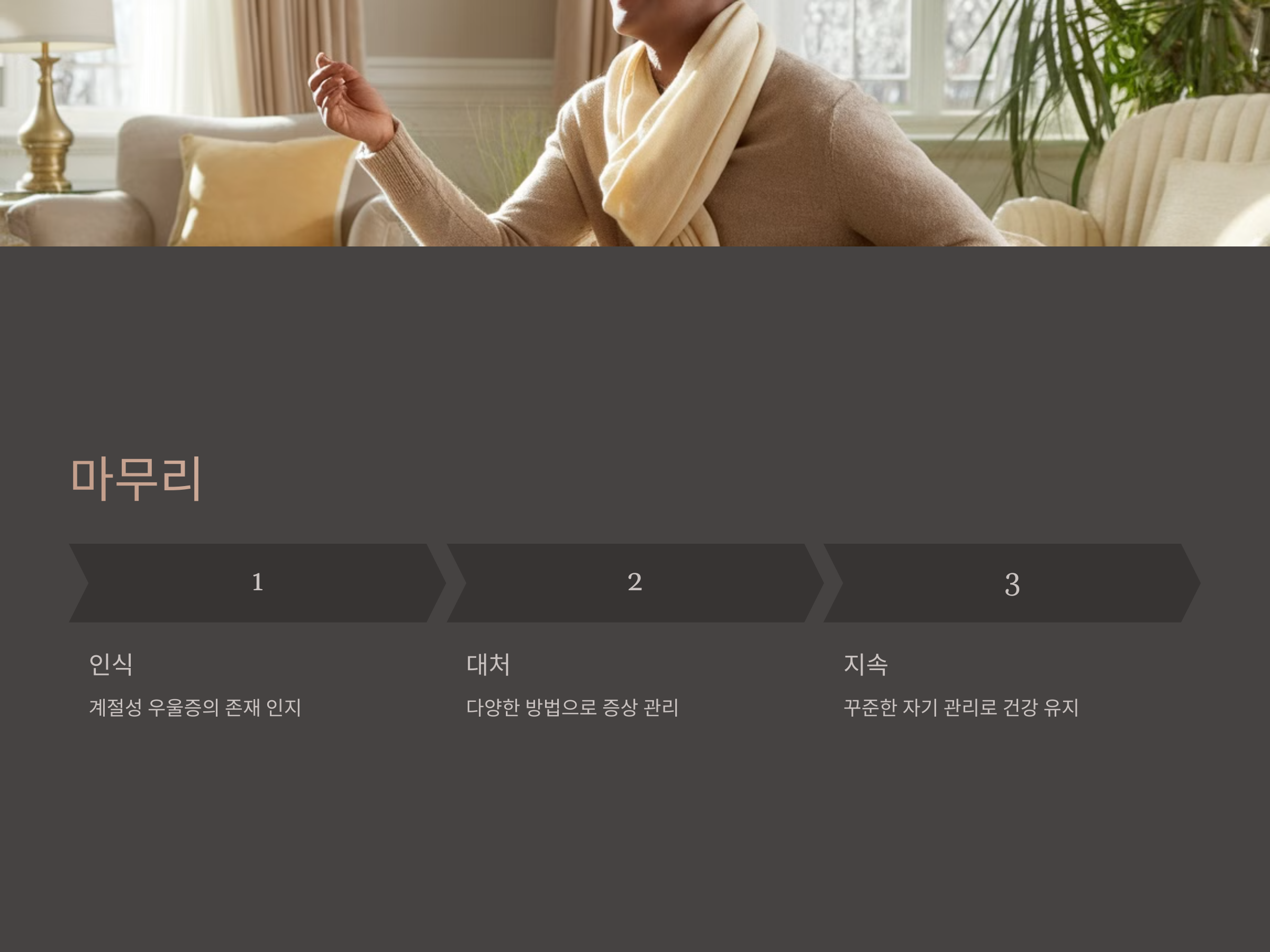 계절성 우울증은 햇빛이 부족한 겨울철에 더욱 두드러지게 나타나지만, 이를 충분히 예방하고 개선할 수 있는 방법들이 존재합니다. 햇빛, 운동, 식이 습관, 수면 관리 등을 통해 건강한 정신 상태를 유지할 수 있습니다. 날씨에 상관없이 자기 자신을 돌보는 것이 중요하며, 작은 노력들이 큰 변화를 가져올 수 있습니다.