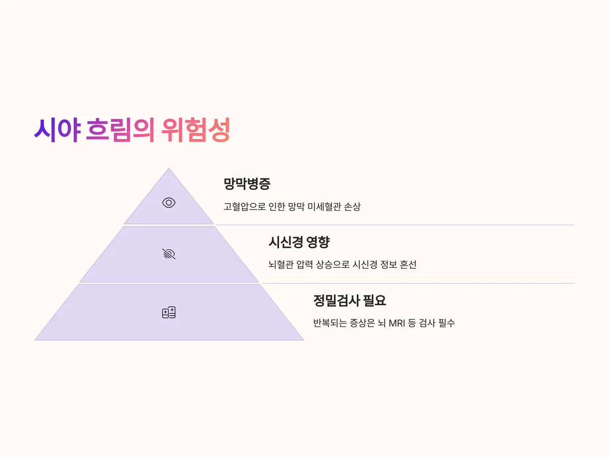 시야 흐림은 많은 사람들이 단순히 안경 도수 변화나 피로로 오해하는 경우가 많지만, 고혈압이 원인일 경우 훨씬 심각합니다. 고혈압이 망막의 미세혈관에 손상을 주면 망막병증이 발생할 수 있으며, 이는 시력을 잃는 직접적인 원인이 됩니다.