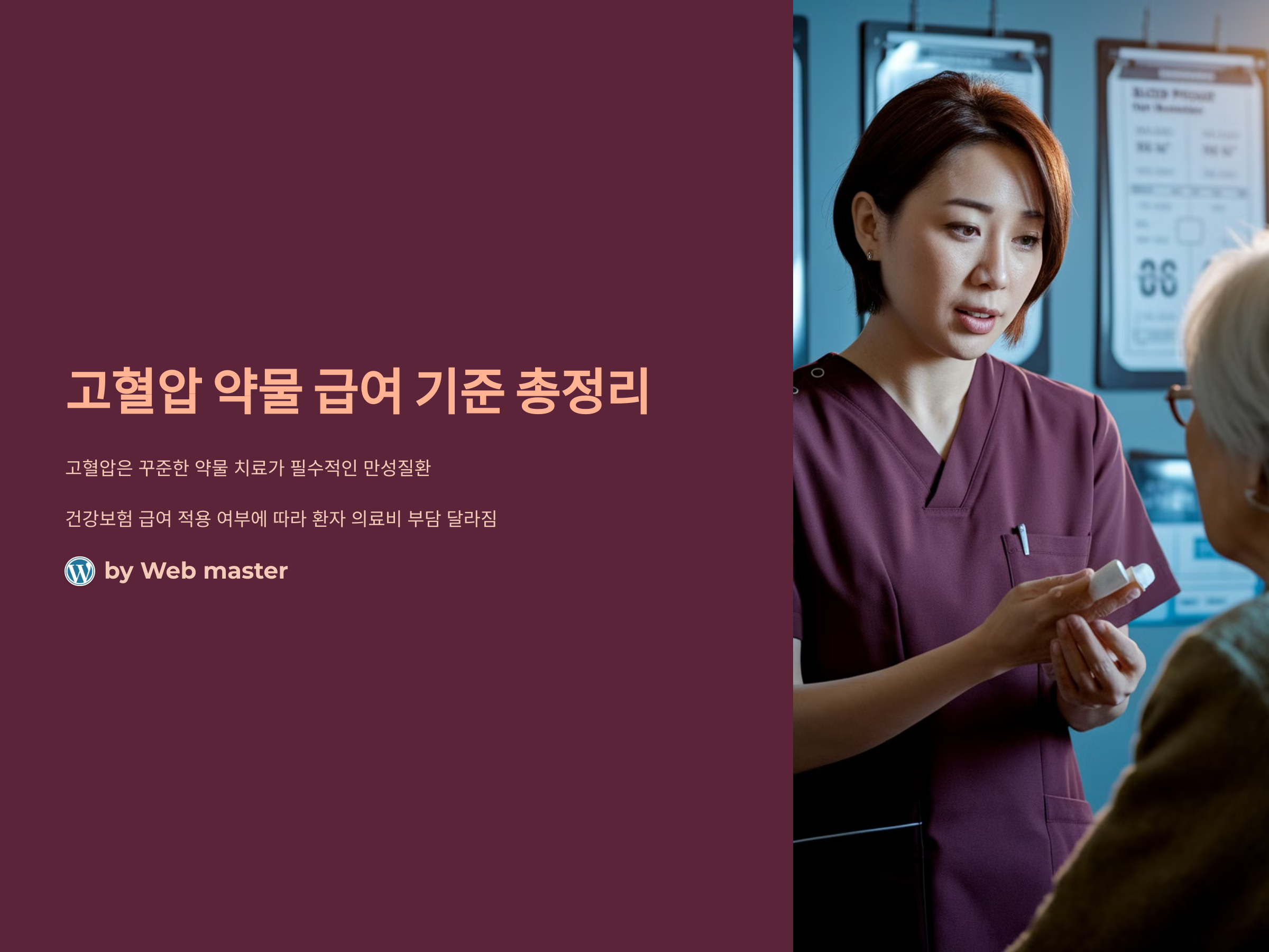 고혈압은 장기적으로 관리해야 하는 질환이므로, 건강보험 급여 적용 여부에 따라 경제적 부담이 달라질 수 있습니다.