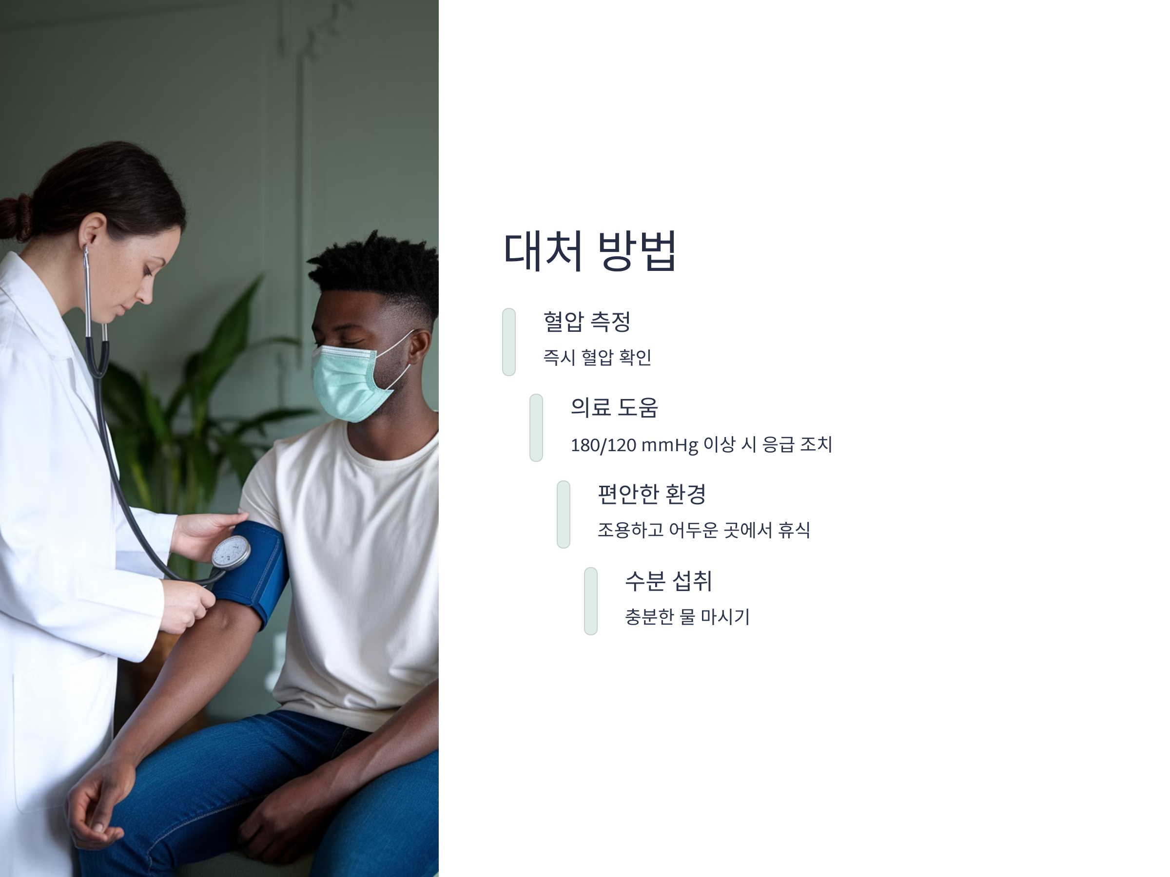 고혈압 위기에서 두통과 코피가 발생하면, 우선 혈압을 빠르게 측정하는 것이 중요합니다. 혈압이 매우 높은 상태라면, 즉시 응급처치가 필요합니다. 그 외에도 두통이나 코피가 발생했을 때 대처 방법을 몇 가지 소개합니다.