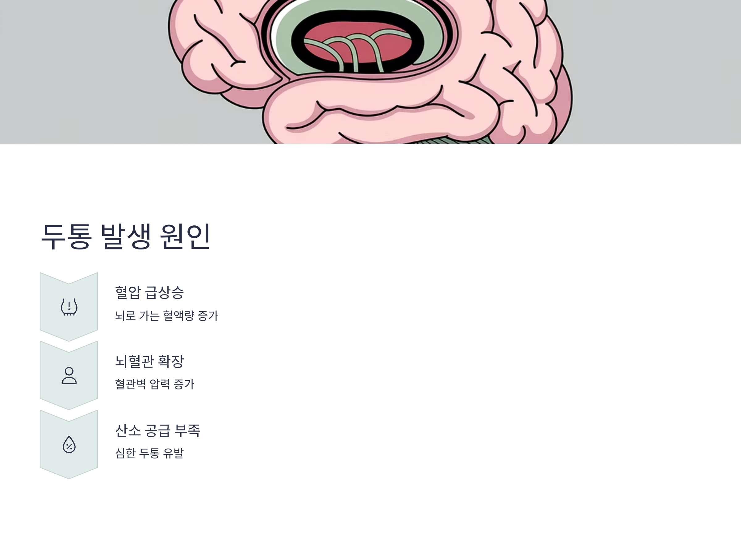 고혈압 위기에서 두통이 발생하는 주된 이유는 혈압 상승으로 인한 뇌의 혈류 변화 때문입니다. 혈압이 급격히 상승하면, 뇌로 가는 혈액이 과도하게 많아져 뇌혈관에 부담을 주게 됩니다. 이로 인해 뇌의 혈관 벽이 확장되거나 터질 수 있으며, 두통을 유발하게 됩니다. 또한, 혈압 상승이 지속되면 뇌의 산소 공급이 부족해져 더 심한 두통을 느낄 수 있습니다.