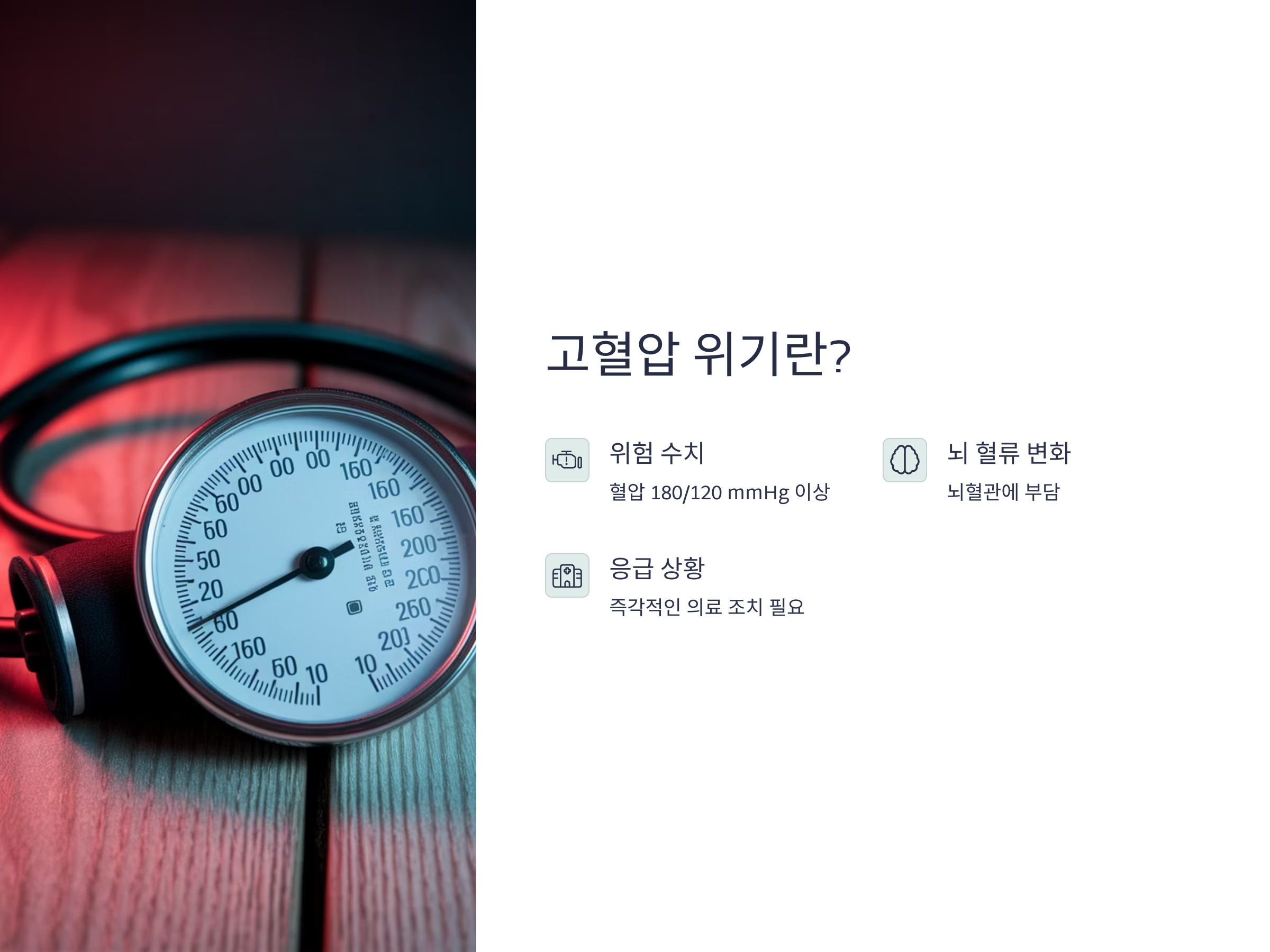 고혈압 위기를 방치하면 치명적인 결과를 초래할 수 있으므로, 혈압이 급격히 상승했을 때는 증상이 경미하더라도 전문가의 도움을 받는 것이 중요합니다.