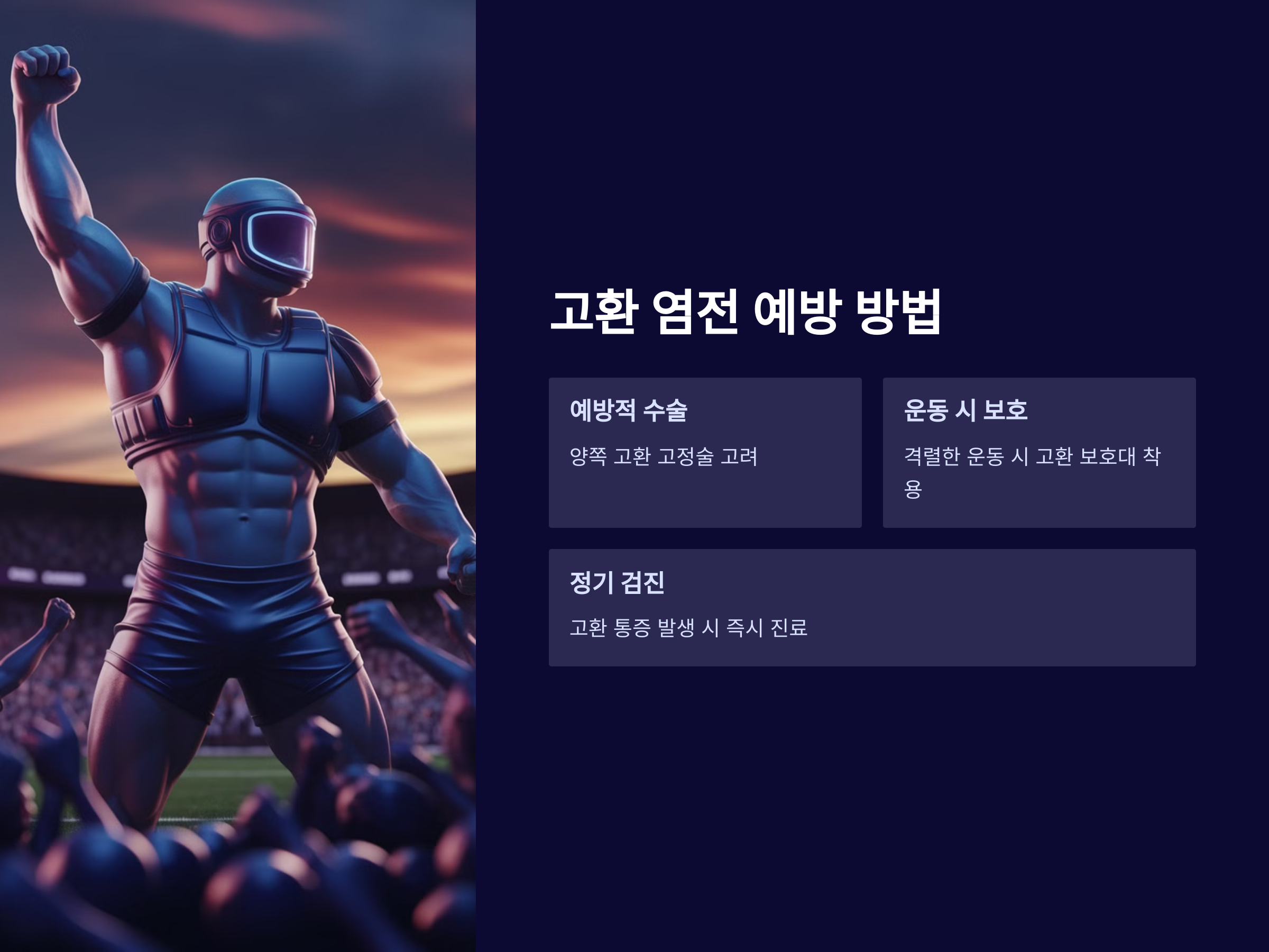 - 축구, 농구 등 격한 움직임이 많은 운동을 할 때는 고환 보호대를 착용하는 것이 좋습니다.