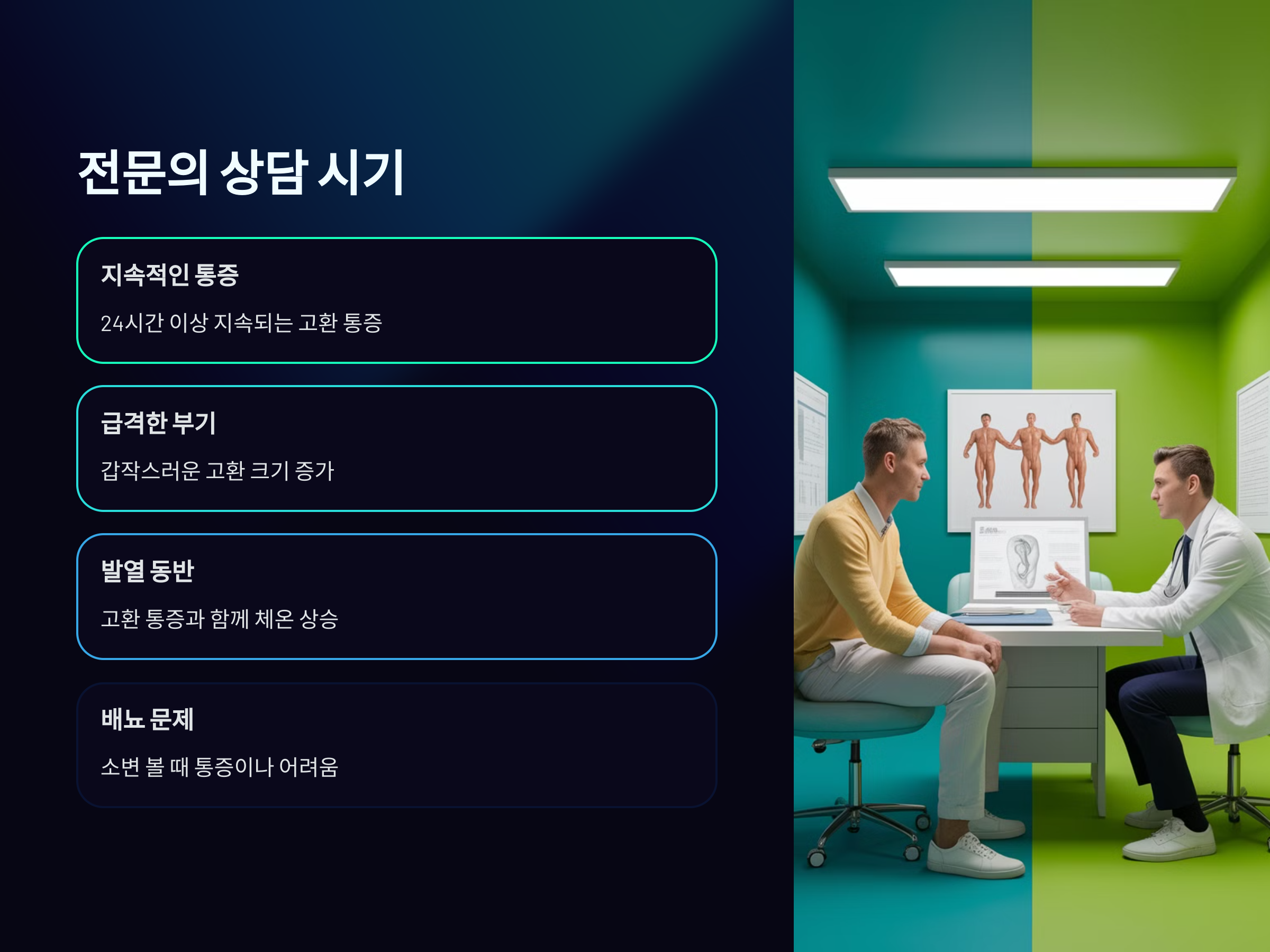 고환 부기와 통증을 경험하고 있다면, 이를 방치하지 말고 조기에 치료를 받는 것이 남성 건강을 지키는 첫걸음입니다.