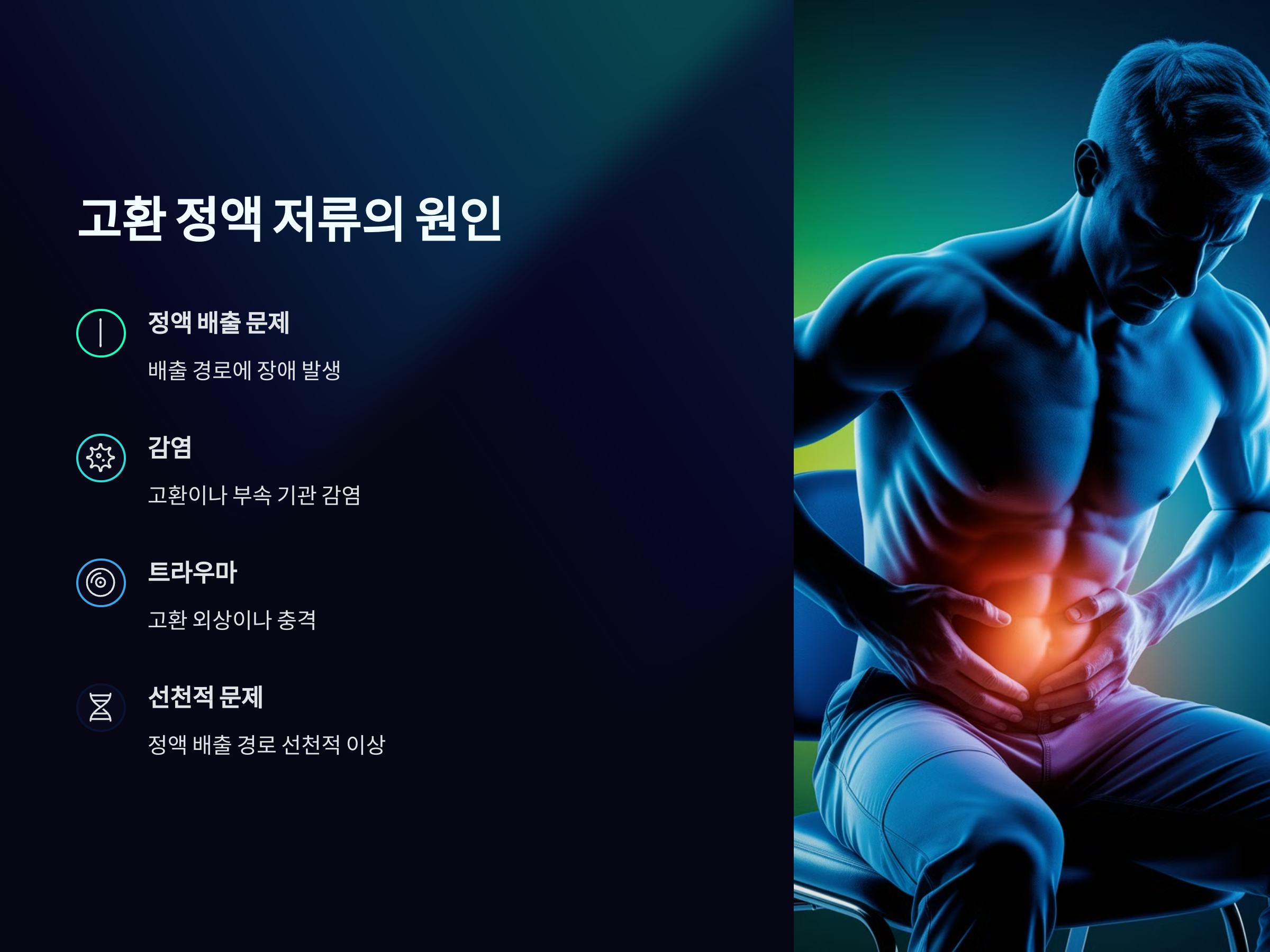 - 정액 배출 문제: 정액이 고환에서 제대로 배출되지 않고 고여 있는 상태가 됩니다. 이는 배출 경로에 장애가 있을 때 발생할 수 있습니다.