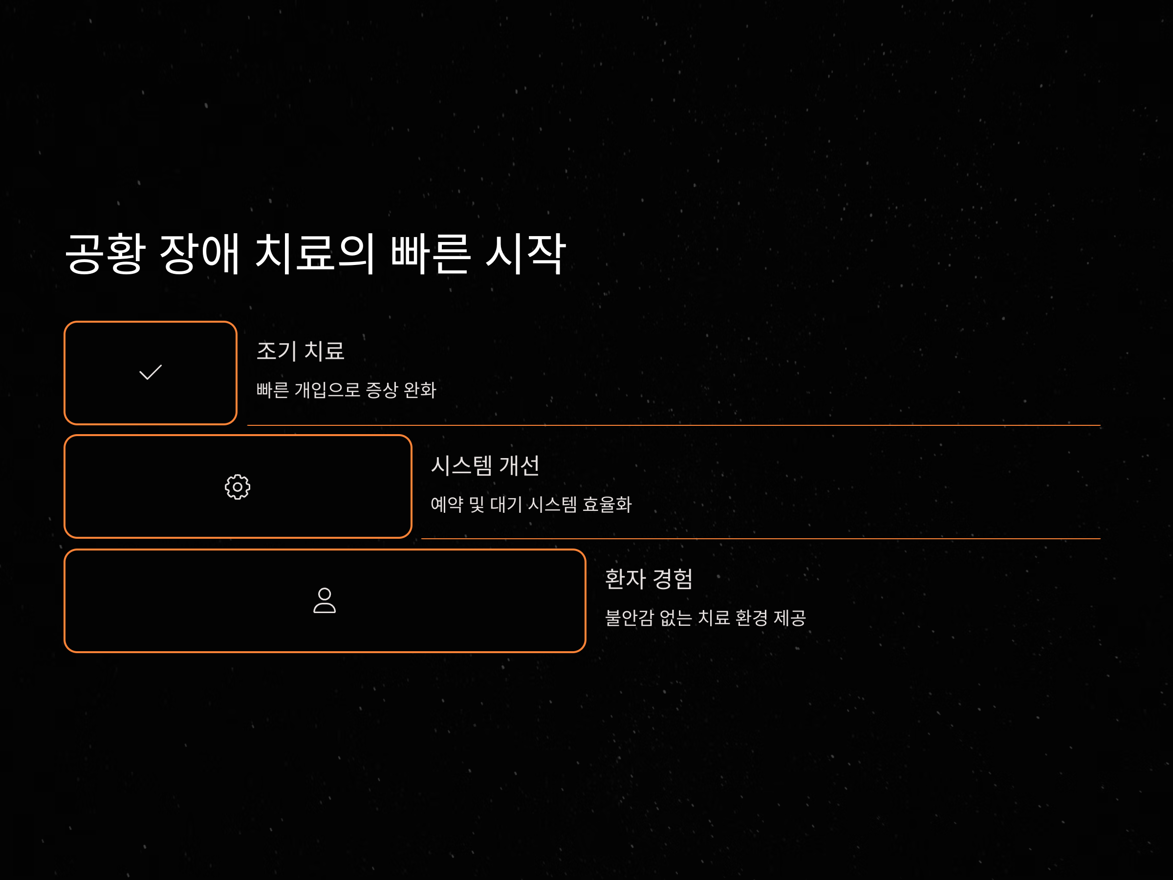 공황 장애를 조기에 치료하는 것이 중요하며, 이를 위해서는 예약 시스템 개선과 대기 시간 단축이 필요합니다. 온라인 예약 시스템과 원격 진료 서비스, 대기 중 온라인 상담 등의 방법을 통해 환자들은 빠르고 효율적으로 치료를 받을 수 있습니다. 이러한 방법들은 병원의 업무 효율성도 높이며, 환자들에게도 더 나은 경험을 제공할 수 있습니다. 환자가 불안감을 느끼지 않고 치료를 받을 수 있도록, 각 병원은 진료 예약과 대기 시간을 최소화할 수 있는 방법을 적극적으로 도입해야 합니다.