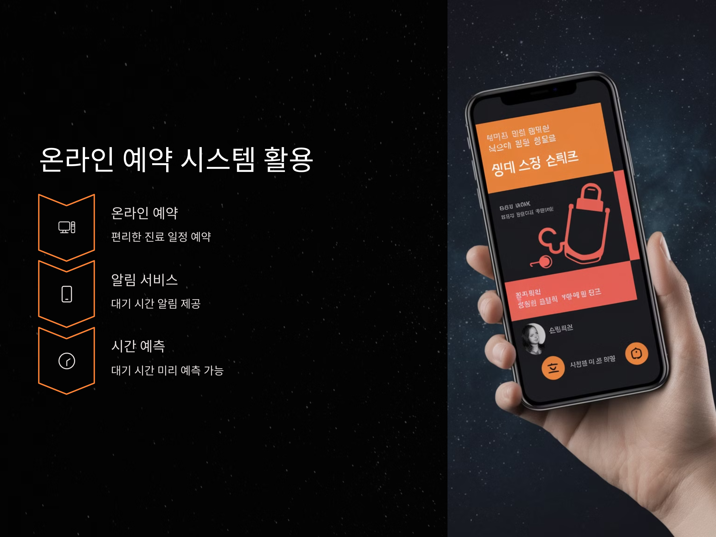 현재 많은 병원들이 온라인 예약 시스템을 도입하여 환자들이 미리 진료 일정을 예약하고 대기할 수 있게 하고 있습니다. 온라인 예약 시스템을 통해 환자는 전화로 예약하는 번거로움을 줄이고, 대기 시간을 미리 예측할 수 있습니다. 또한, 대기 중에도 병원 측에서 제공하는 알림 서비스를 통해 대기 시간을 효율적으로 관리할 수 있습니다.